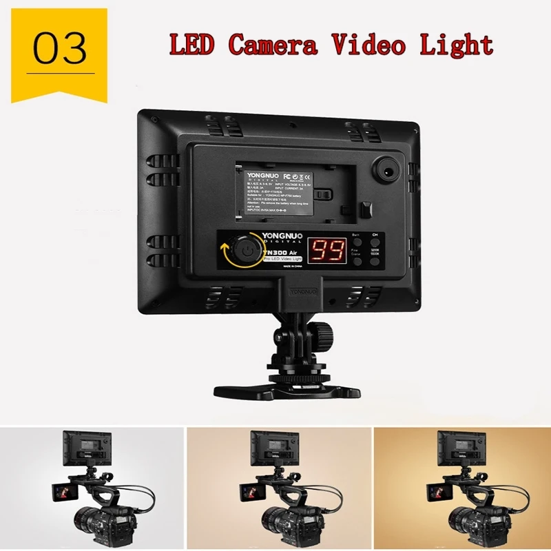 Использует светодиодный светильник SMD как источник, который обеспечивает мягкий светильник и широкий угол освещения, и он делает светильник YN300 Air video гораздо более подходящим для наполнения светильник на близком расстоянии.
