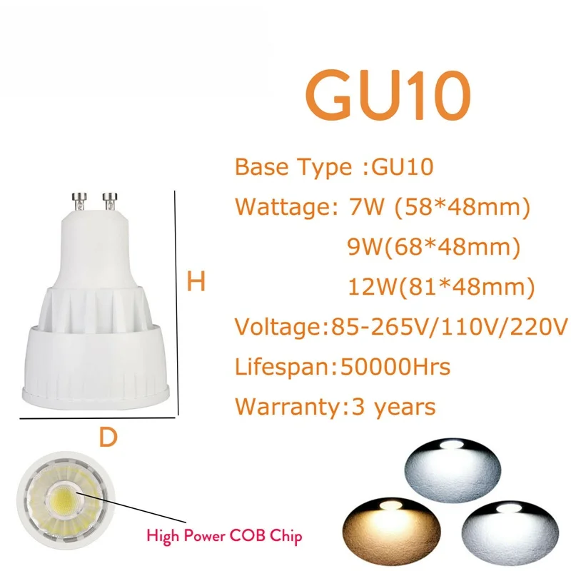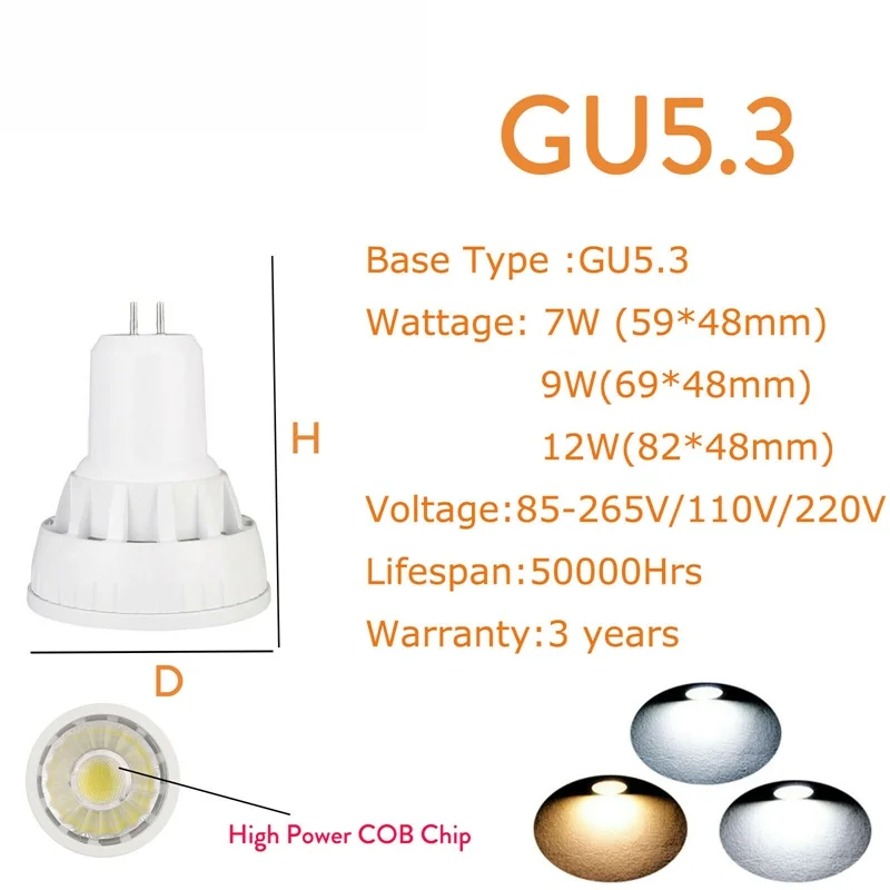 COB Светодиодный точечный светильник лампы GU10 MR16 GU5.3 E27 E14 E12 B22 B15 7 ваттов 9 ваттов 12 ваттов 110V 220V 12V белый светодиодный светильник ing яркий