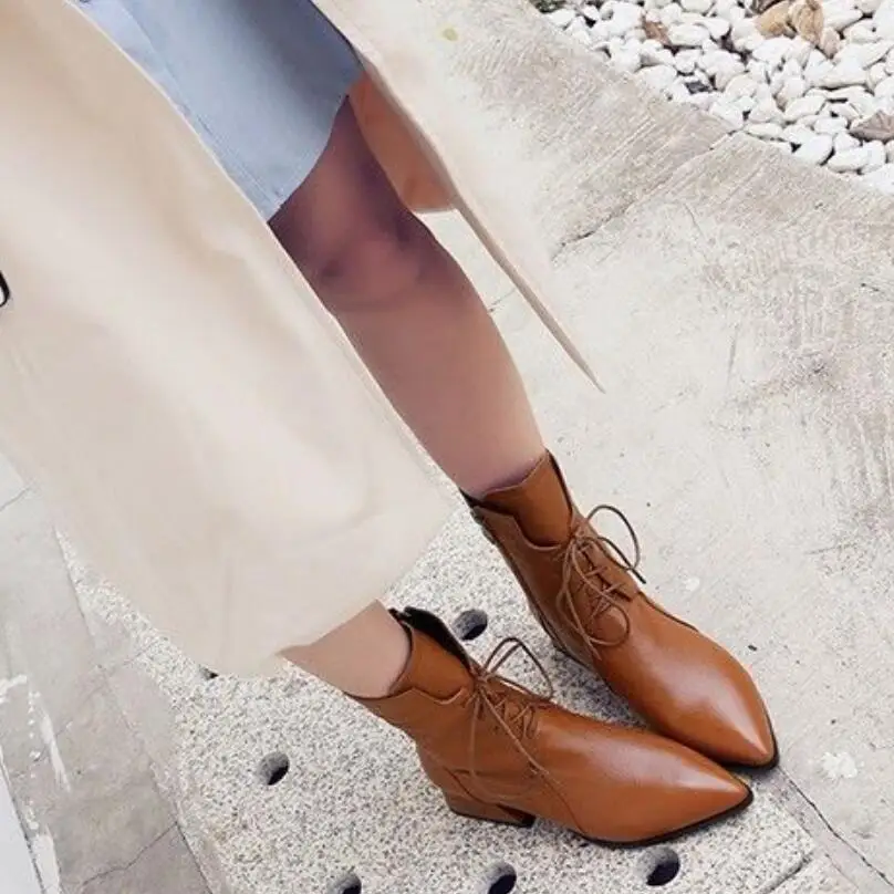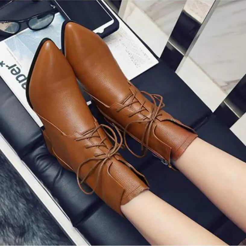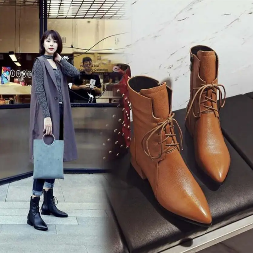 Отзывы о 2020 г. модные полусапожки женские ботильоны женская зимняя обувь на шнуровке с