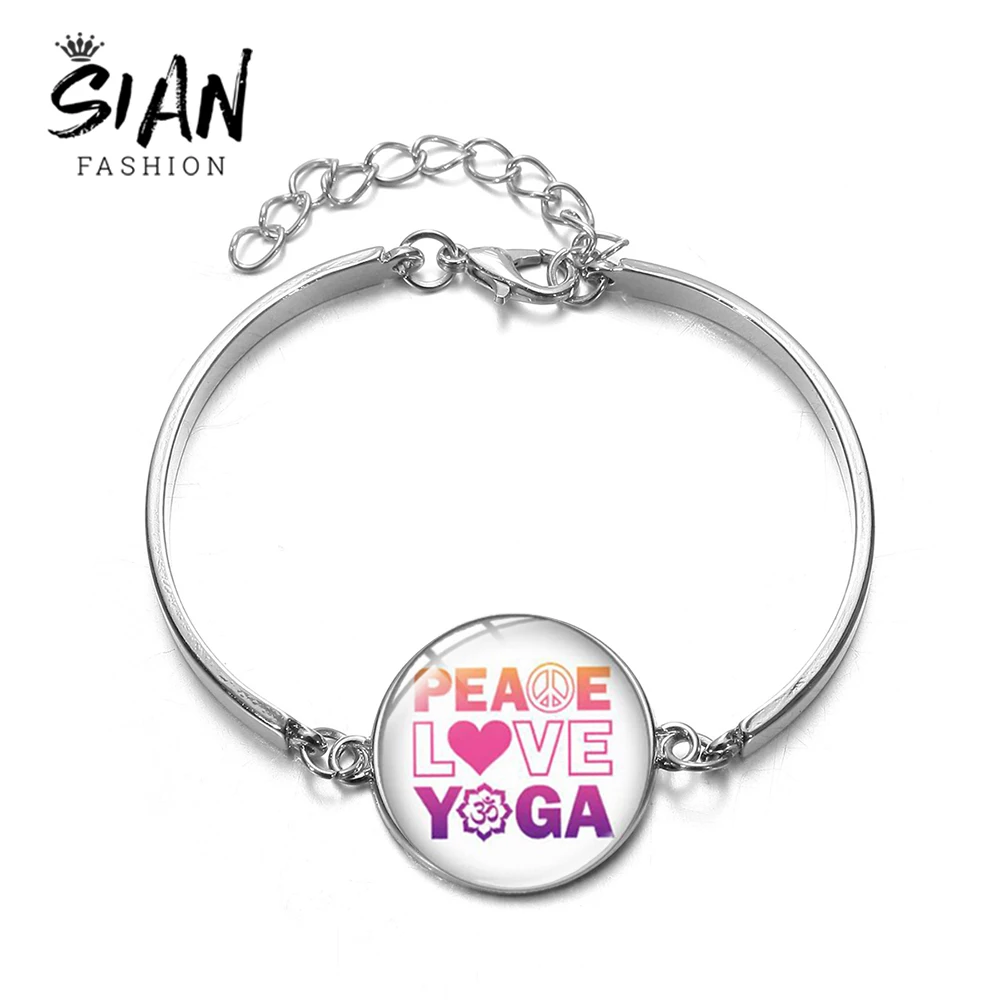 SIAN Peace Love Yoga Pink Letter Picture Bracelet Glass Crystal Silver Plated Chain Club Souvenir Bangle for Women Украшения и - купить