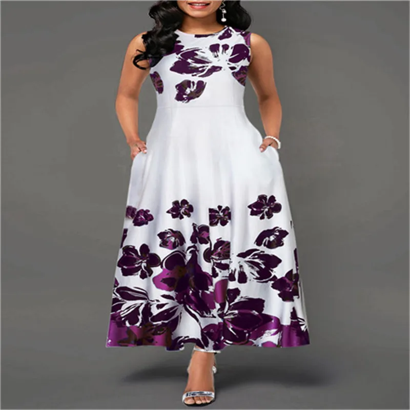 Женское винтажное платье-макси с цветочным принтом без рукавов Женская одежда - купить