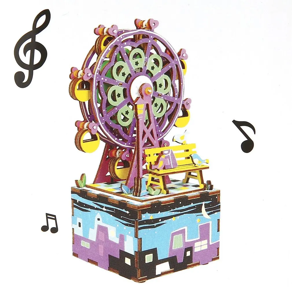 DIY 3D деревянные головоломки двунаправленный музыкальная шкатулка колесо обозрения заводные игрушки детей Рождественский подарок для дома для декорирования вестибюлей