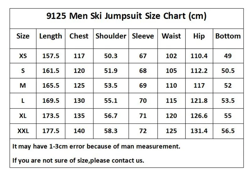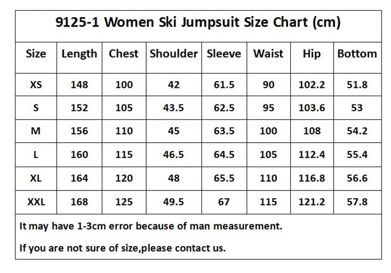 Этот лыжный комбинезон имеет цвет мужчины и женщины, вы можете выбрать свой размер в соответствии с таблицей размеров мужчин или женщин.