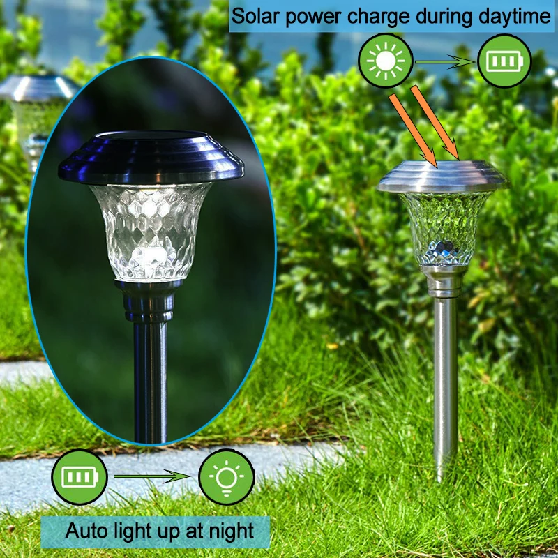 1. Размер и устойчивая к коррозии существенная стекло/нержавеющая сталь: садовый светильник на солнечной энергии измеряет 42 см в высоту x 12 см в диаметре. Беспроводной Солнечный Путь светильник с автоматическим датчиком из Нержавеющая Сталь Водонепроницаемые гранёное Стекло светильник оттенок, который позволяет использовать этот яркий Солнечный садовый светильник на открытом воздухе прочно.