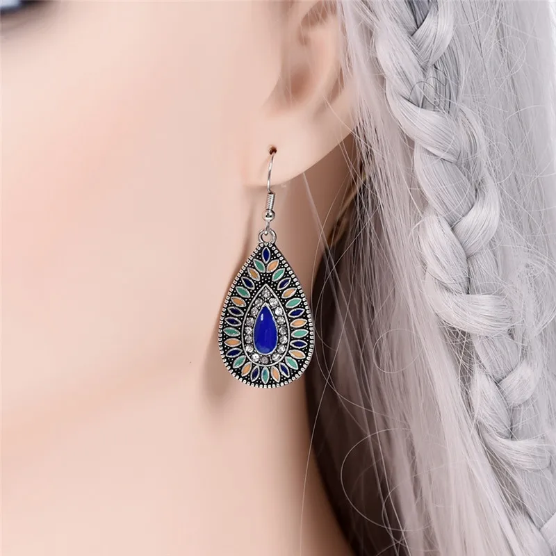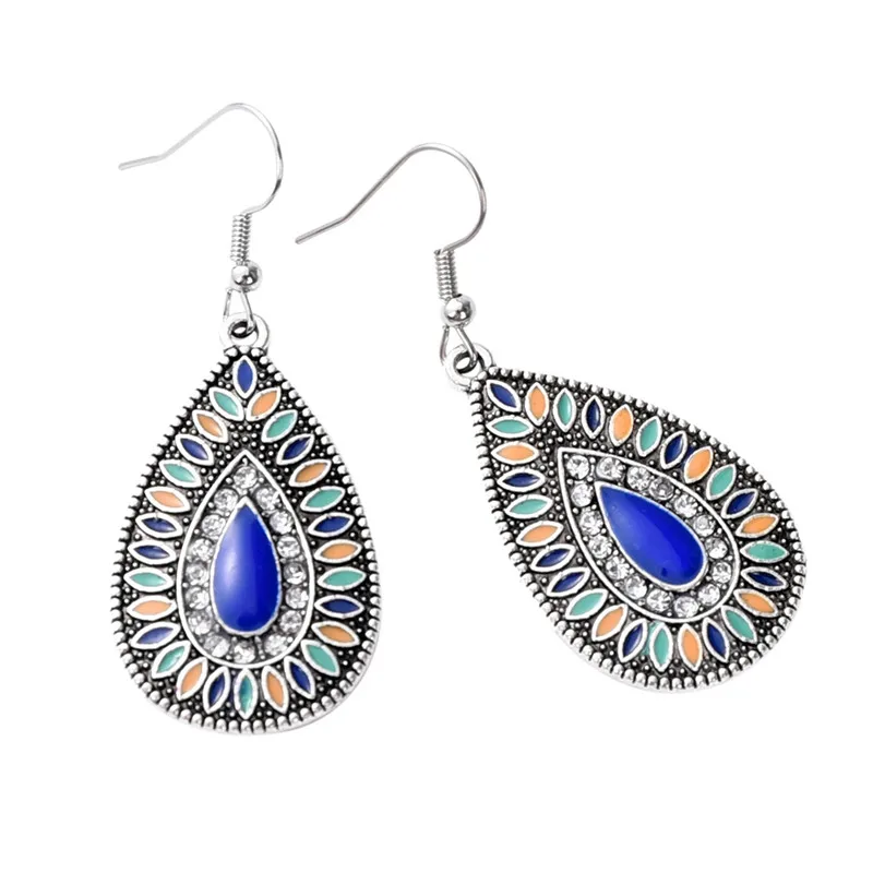 Купить Exotic Style Water Drop Earrings Oil Rhinestone Bohemian Retro Palace Wind Ear Jewelry Dangle | Украшения и аксессуары
