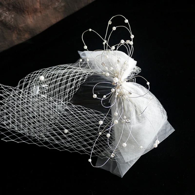 JINJIAN Невеста супер фея головной убор сетка бант аксессуары для волос короткая - купить