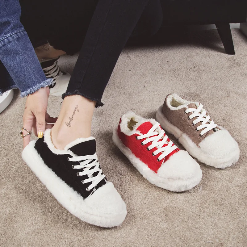 Отзывы о Женские кроссовки на меху красные черные повседневные из флока плоской подошве с