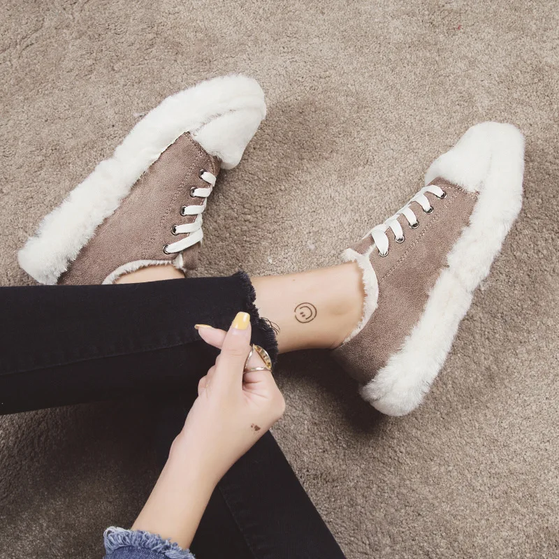 Женские кроссовки на меху красные черные повседневные из флока плоской подошве с - купить