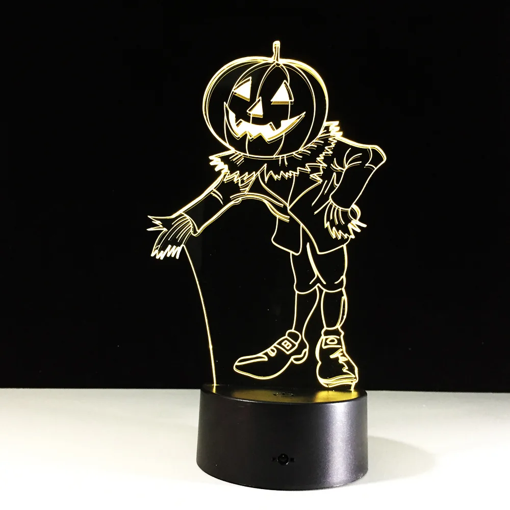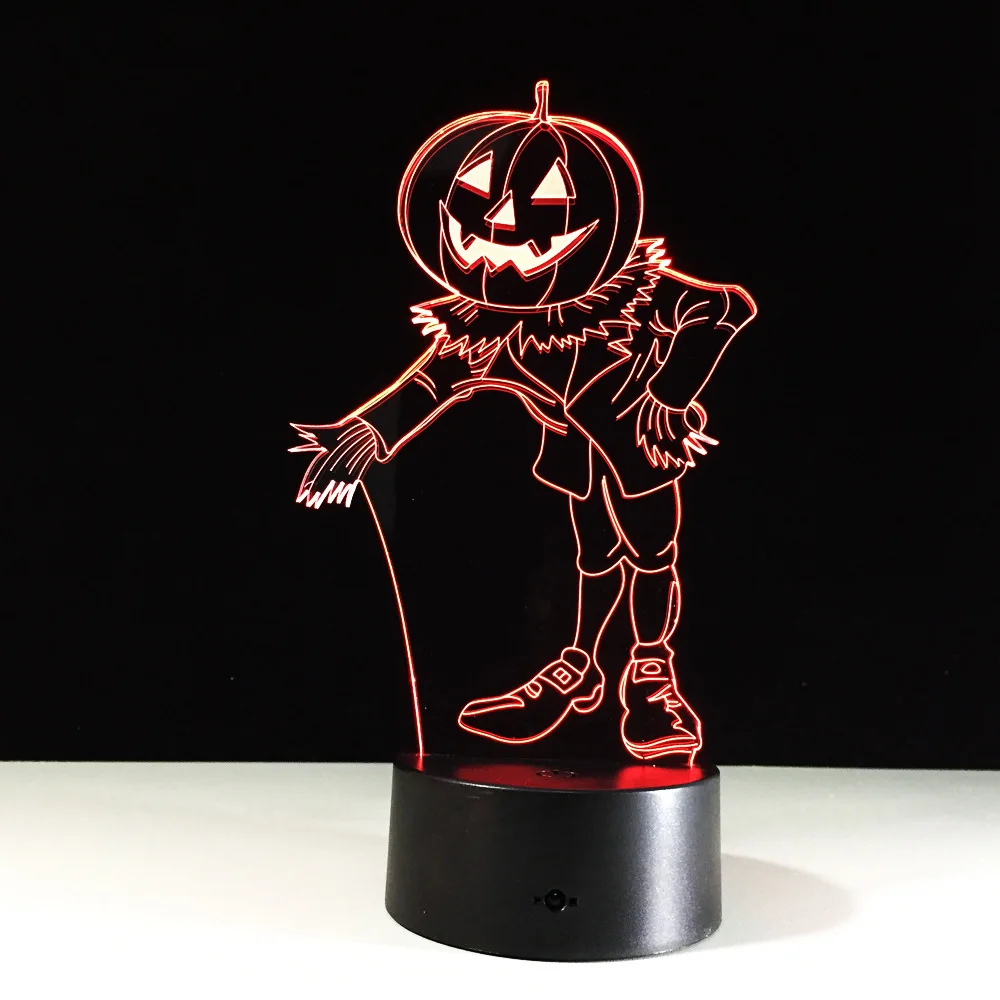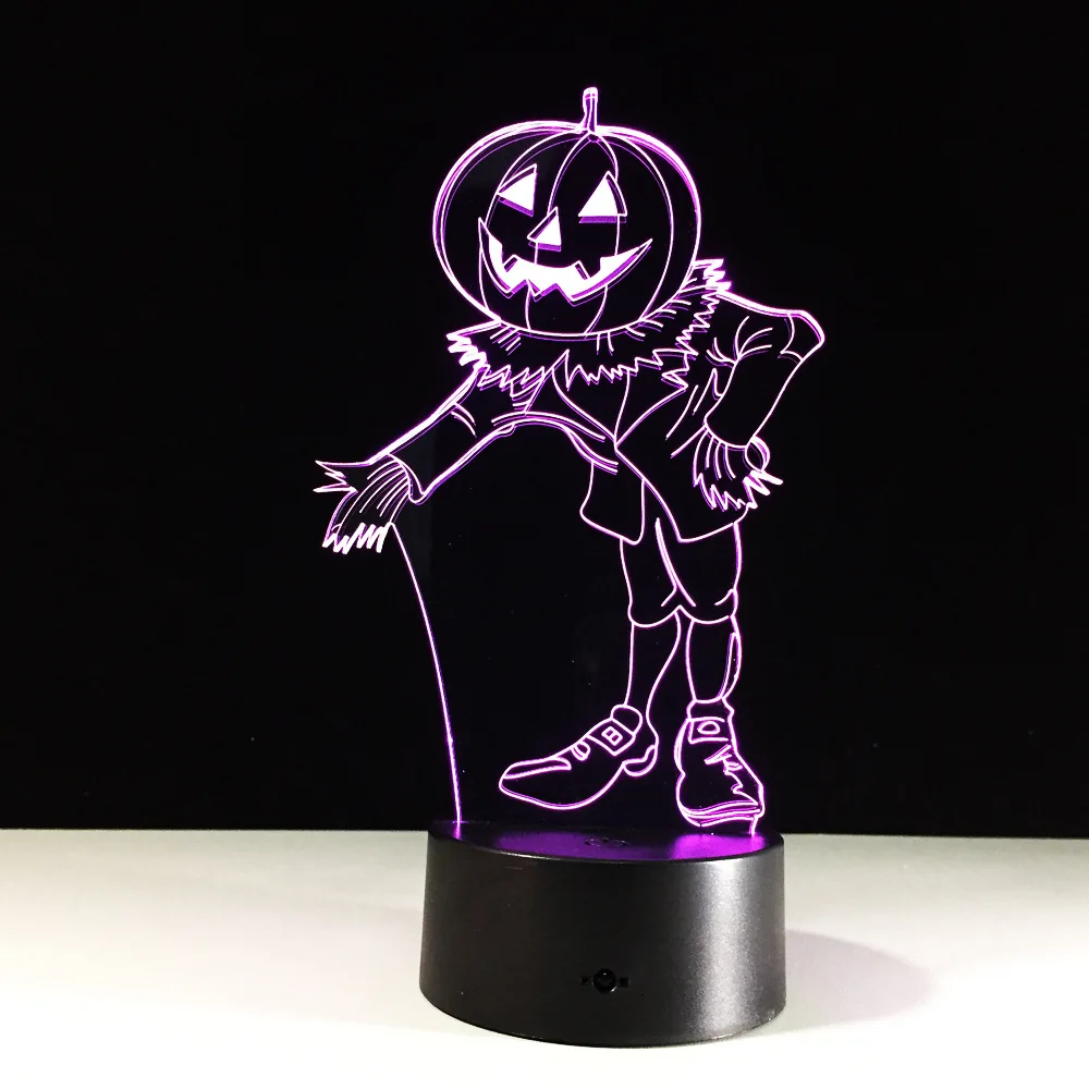3D эффект тыквы человек голограмма 7 цветов меняющийся СВЕТОДИОДНЫЙ Ночник светильник 3D светодиодный Ночник светильник светодиодный стол Хэллоуин Рождество Новый год лампа