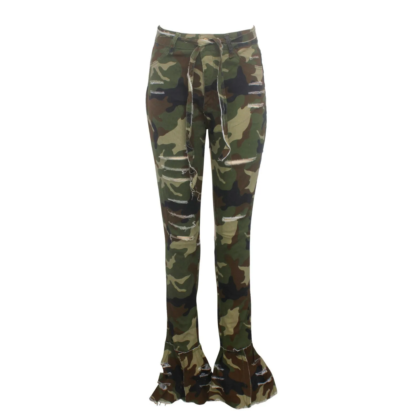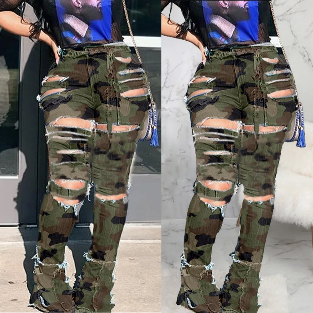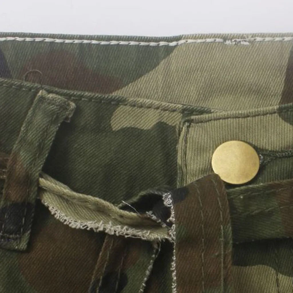 Купить Камуфляжные Узкие рваные джинсы женские штаны карандаш стрейч из денима с