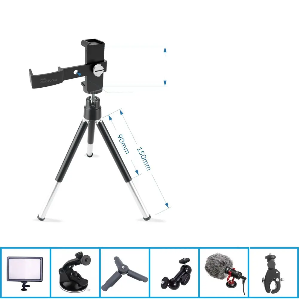 Кронштейн для телефона Штатив для DJI OSMO POCKET/POCKET 2 Handheld Gimbal расширительные Аксессуары Многофункциональный фиксированный держатель Штатив OSMO карманный мобильный телефон держатель Вес нетто: 120 г Вес брутто: 140 г Материал изделия: авиационный алюминий с ЧПУ Размер упаковки: 150 мм * 50 мм * 40 мм Стандартный интерфейс 1/4 дюйма * 1 Интерфейс холодной загрузки * 1 Больше возможностей больше способов играть Предназначен для OSMO Pocket/Pocket 2 PTZ камеры Алюминий CNC гравировка, анодирование, лазерная гравировка и т. Д. Стандартный интерфейс холодной обуви и 1/4 "для интерфейса 60 мм-90 мм Ширина мобильный телефон Поддержка Удобный и надежный Автоспуск со штативом Сложите его и используйте в качестве ручки Стандартный интерфейс холодной обуви и 1/4 "для интерфейса Упаковочный лист: 1 * OSMO карман/карман 2 мобильный телефон держатель Не включает карман omso