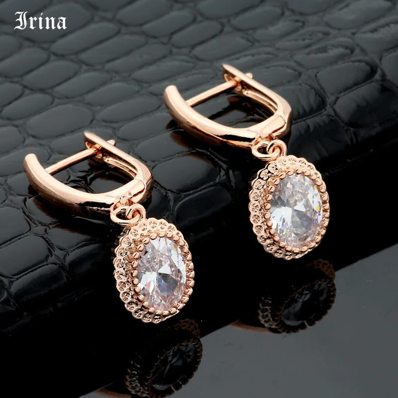 Отзывы о Женские серьги-подвески в форме яйца розовое золото 585 пробы с фианитом