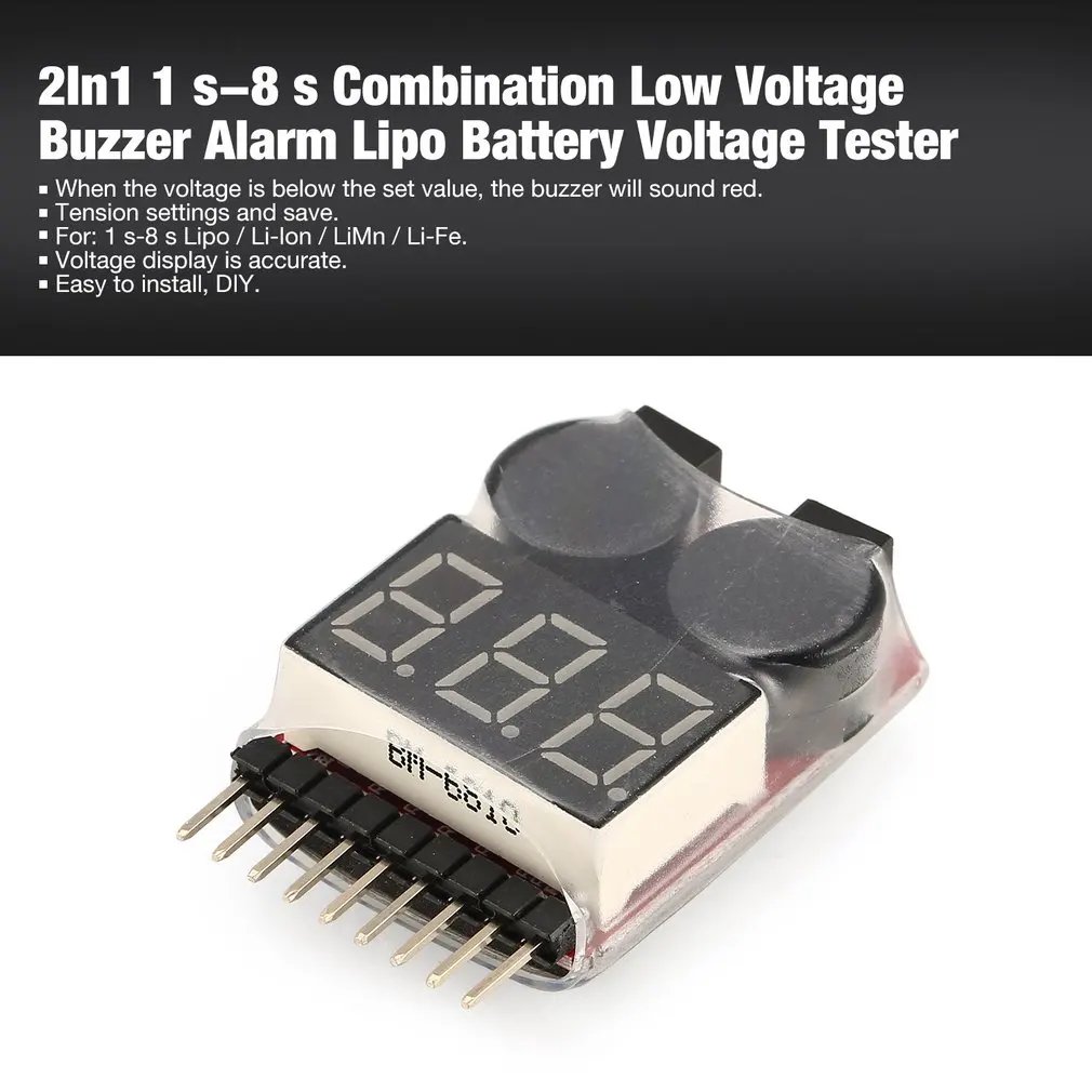 Lipo Battery Voltage Tester Volt Meter Indicator Checker Dual Speaker 2 in 1 1 s-8 s Combination Low Voltage Buzzer Alarm