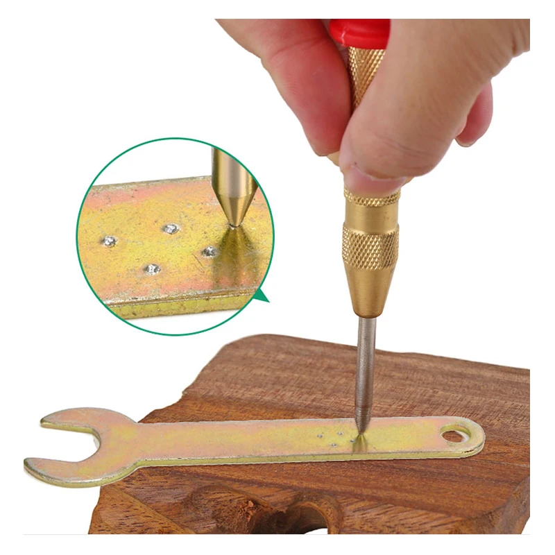 Описание: Автоматический центральный перфоратор-это ручной инструмент, используемый для производства Ямочки В заготовке. Он выполняет ту же функцию, что и обычный центральный перфоратор, но без необходимости в молотке. При нажатии на заготовку, она сохраняет энергию весной, в конце концов выпуская ее в качестве импульса, который движет ударом, производя ямочку. Импульс, предоставленный в точку удара, является довольно повторяемым, что позволяет произвести равномерные впечатления. Особенности: Наконечник этого автоматического центрального перфоратора изготовлен из высокоскоростной стали для высокой прочности и долговечности. Молоток не нужен, с помощью этого автоматического инструмента центр, вы можете создать ямочку в заготовке быстро и легко. Обычно используется для маркировки центра точки, небольшая ямочка направляет кончик сверла и позволяет избежать скольжения или отклонения, которые привести к повреждению. Подходит для штамповки стальных пластин, алюминия, меди, деревянной доски и других материалов для позиционирования отверстий. Он также является отличным инструментом хранится в автомобиль, который будет использоваться для разбивания окна чехол возникает чрезвычайная ситуация.