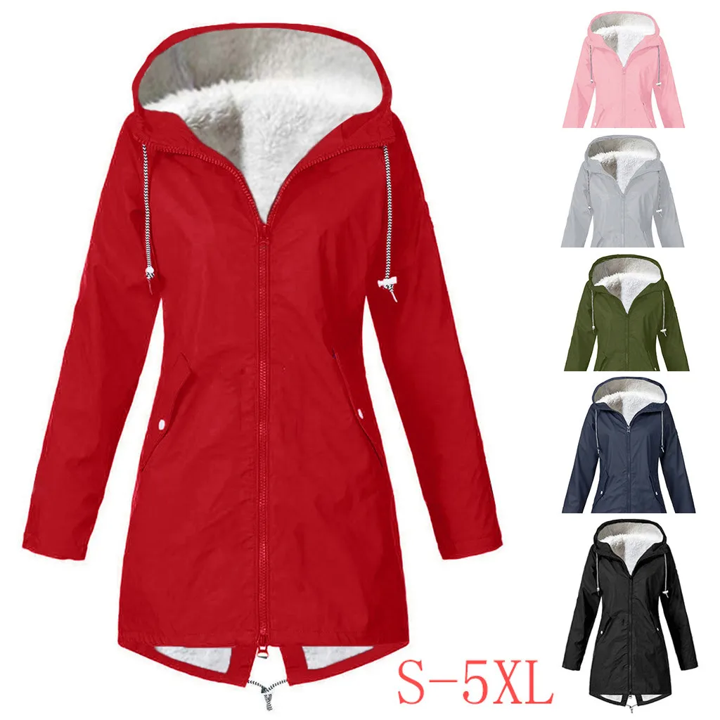 Женский однотонный зимний теплый толстый плащ с капюшоном размера плюс, ветрозащитный