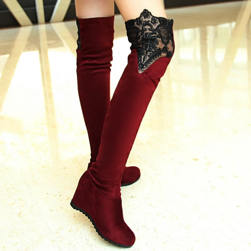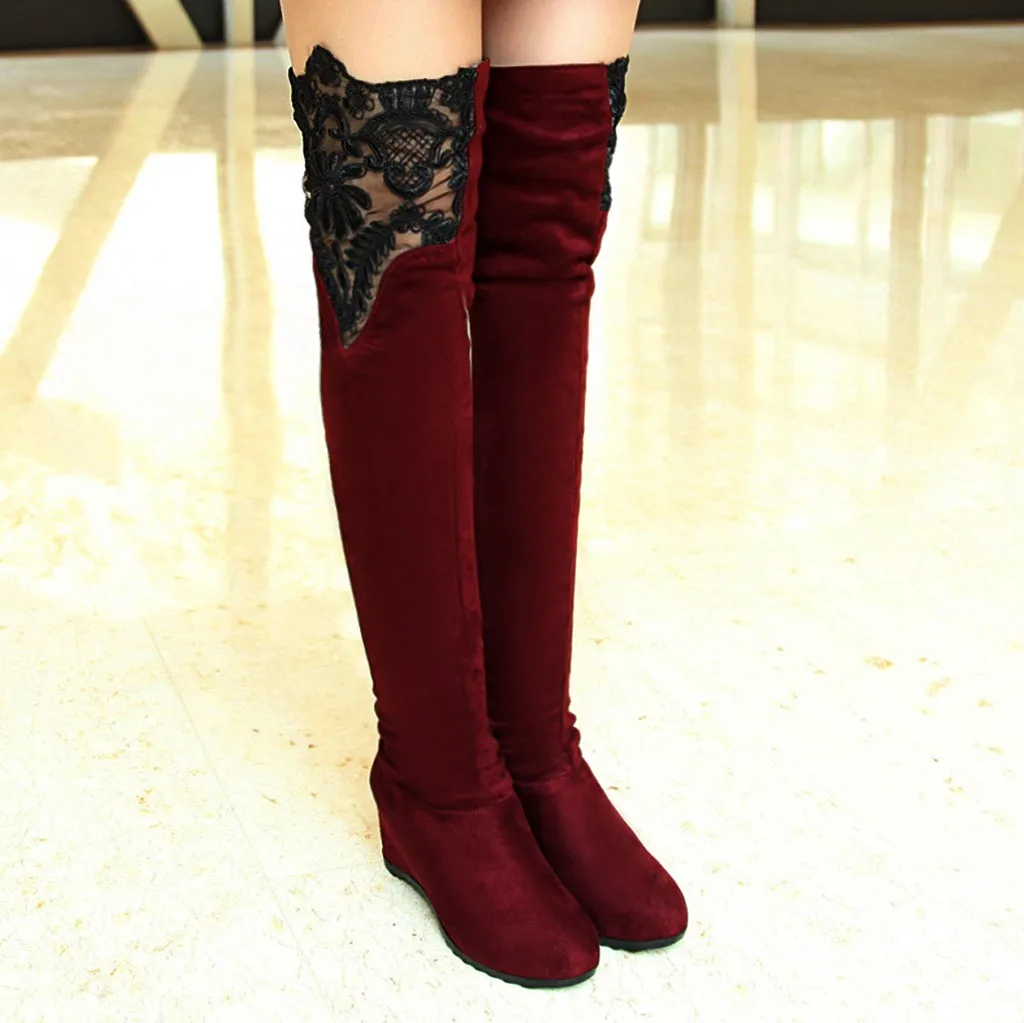 Отзывы о Женские ботфорты выше колена пикантные замшевые зимние сапоги на шнуровке