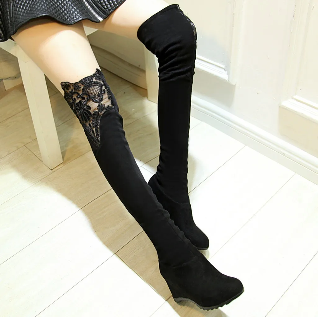 Купить Женские ботфорты выше колена пикантные замшевые зимние сапоги на шнуровке