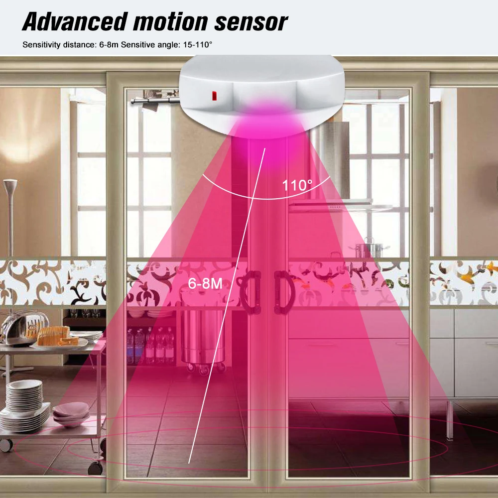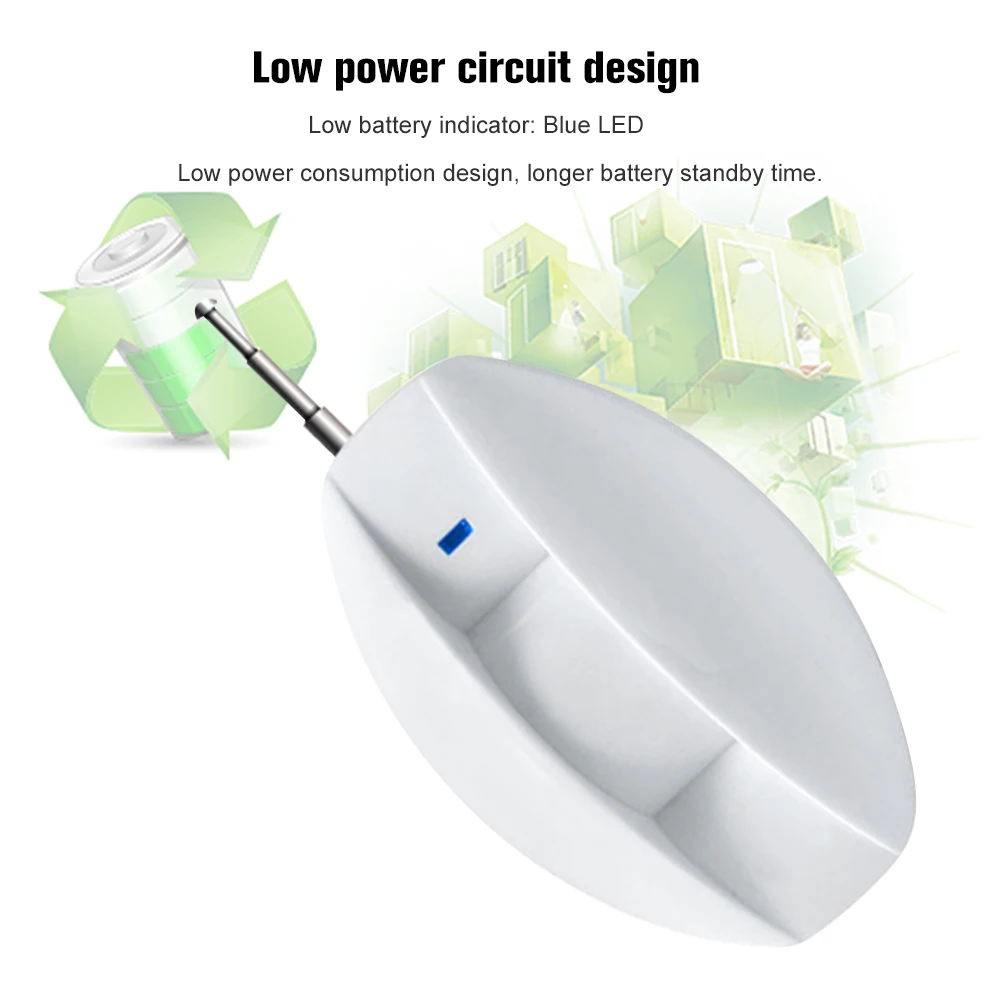 Беспроводной пассивный инфракрасный детектор с высокой стабильностью, применяемая передовая технология обработки сигналов, обеспечивает супер высокую способность обнаружения и сигнализацию от ошибок.