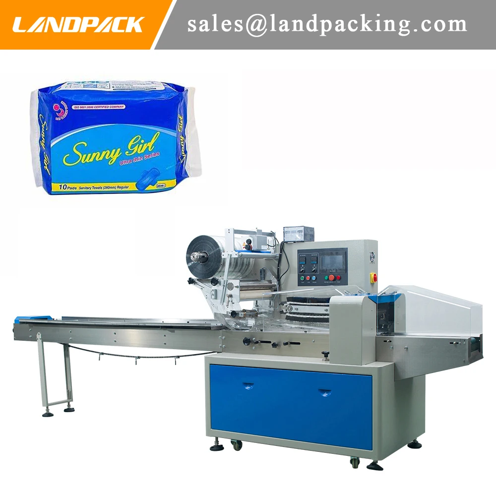 Санитарные прокладки упаковочная машина санитарный хлопок горизонтальный поток обертывания машина