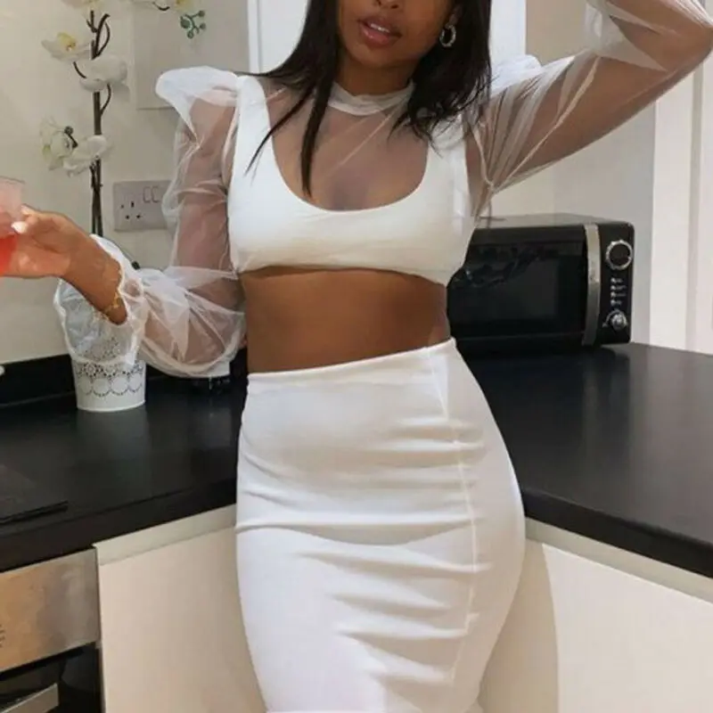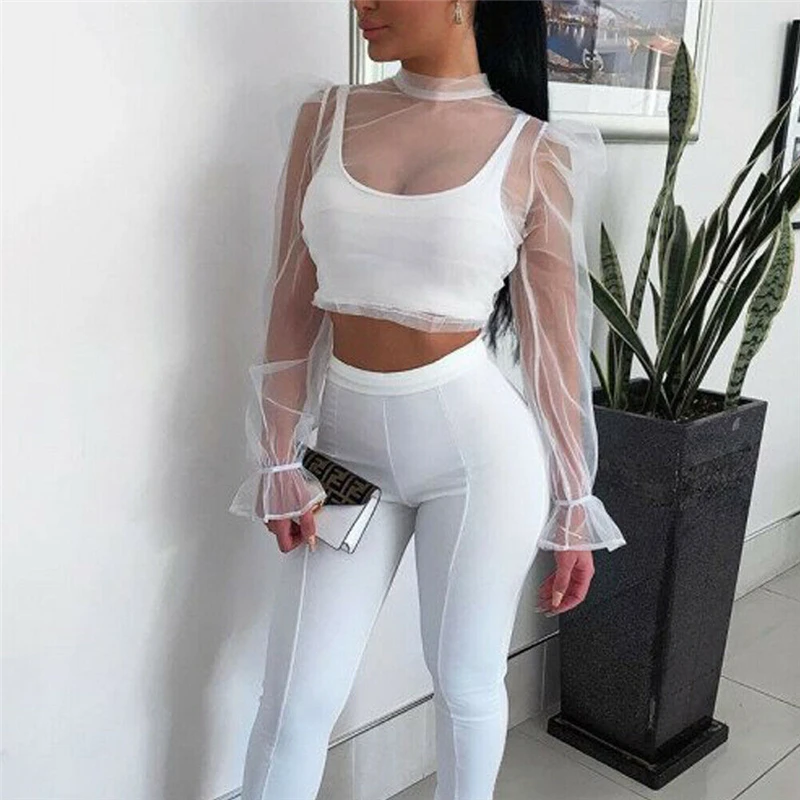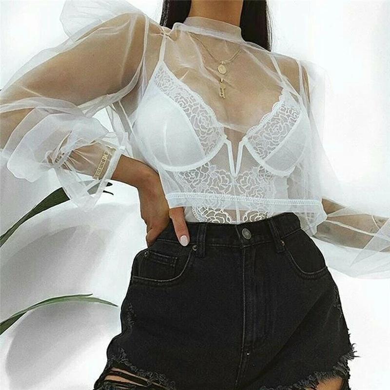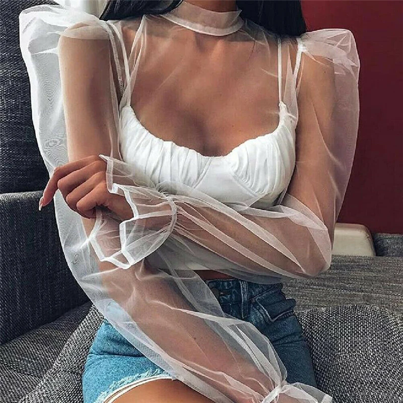 Женская Прозрачная Сексуальная Блузка из прозрачной сетки топ с пышными - купить