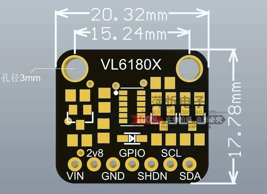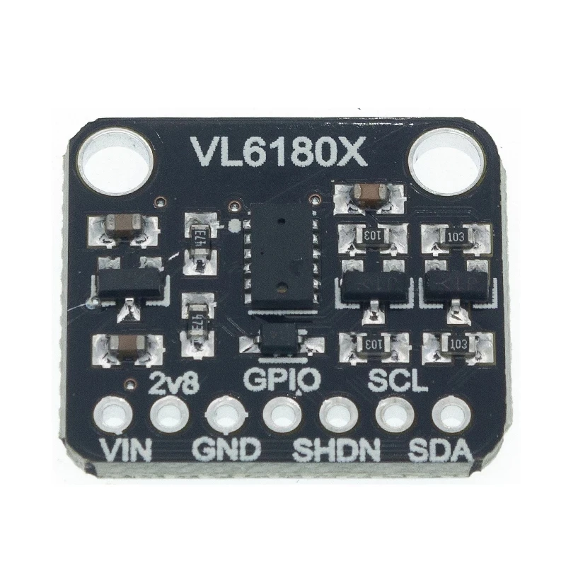Введение продукта: VL6180 является датчиком времени полета. Датчик содержит очень маленький лазерный источник и соответствующий датчик. VL6180X может обнаруживать «Время полета» или время, необходимое лазеру для восстановления датчика для расчета расстояния. В отличие от большинства датчиков расстояния, которые полагаются на отраженный светильник интенсивности или угла отражения для определения расстояния, VL6180 Использует точные часы для измерения времени, которое требуется, чтобы светильник отскакивал от поверхности, так как используется очень узкий источник, который отличается от ультразвукового гидролокатора. В отличие от традиционных инфракрасных датчиков расстояния, вы не можете сказать, Близок ли объект, потому что нет линейной проблемы или «двойное изображение». Таким образом, VL6180X является более точным. Модуль VL6180 рекомендуется обрабатывать расстояния от 5 мм до 100 мм. Из-за небольшого размера модуль датчика прост в использовании в любом Роботе или интерактивном проекте. Вы можете использовать его с любым блоком питания 3-5 в или логическим микроконтроллером. Характеристики продукта 1. Интегрированный Интеллектуальный оптический модуль, который используется для определения расстояния, диапазона и других функций; 2. Быстрое и точное измерение расстояния. Измерьте абсолютный диапазон от 0 до 100 мм или более. Основываясь на независимых от объекта самоосвещающихся измерениях отражения луча, измерения более 100 мм могут быть использованы в некоторых чрезвычайно желательных целевых отражателей и средах, но не гарантированы; 3. I2C интерфейс для управления устройствами и данных, два программируемых GPIOs.
