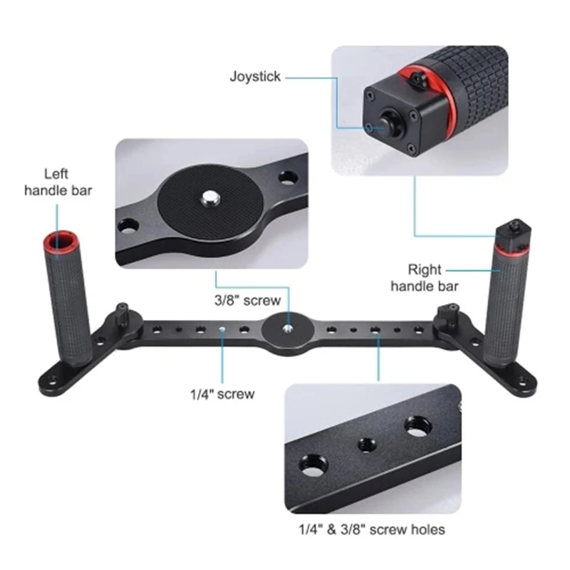 Оснащен вашим карданом на рукоятке с двумя рукоятками, облегчая нагрузку на ваши руки, делая вашу съемку более профессиональной и стабильной.