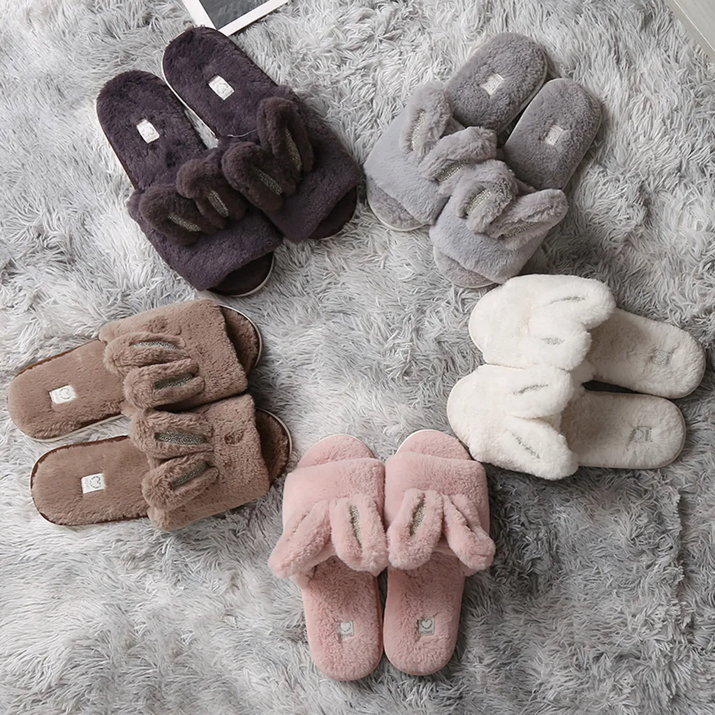 Отзывы о Зимние плюшевые домашние тапочки на платформе с заячьими ушками мягкие