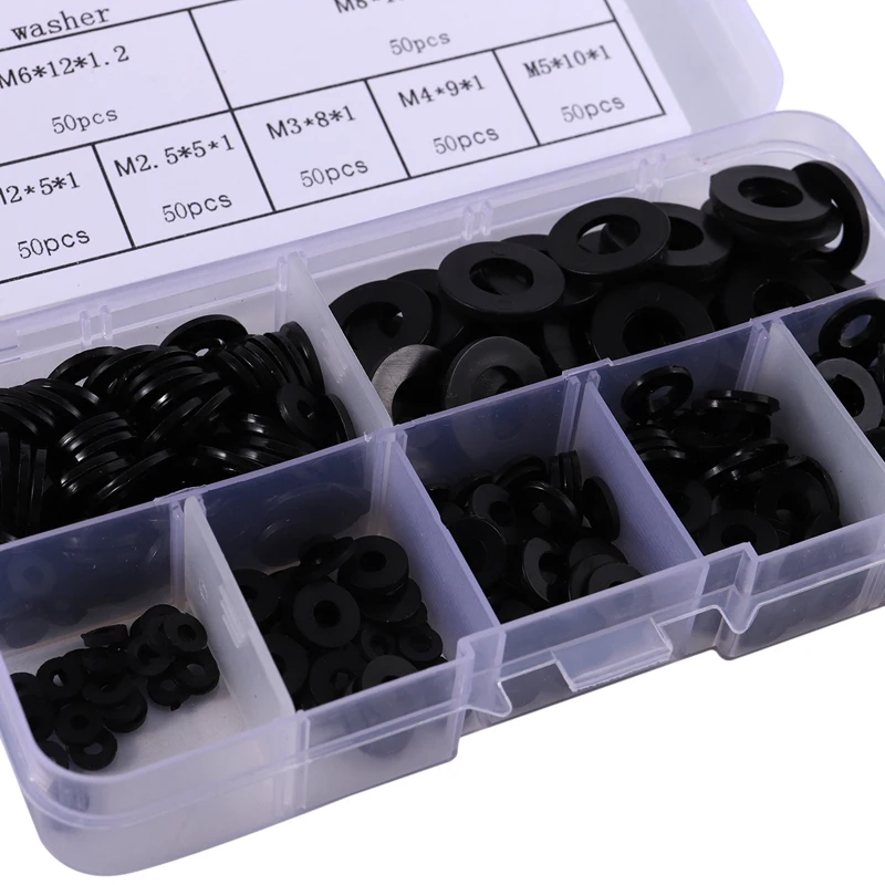 Купить Nylon Flat Round Plastic Washer M2 M2.5 M3 M4 M5 M6 M8 Assortment Kit Black 350Pcs | Обустройство дома