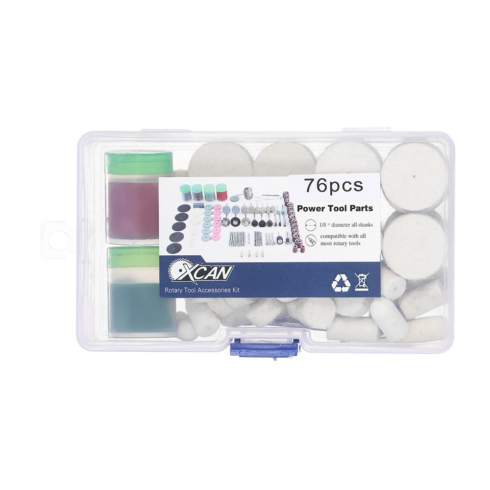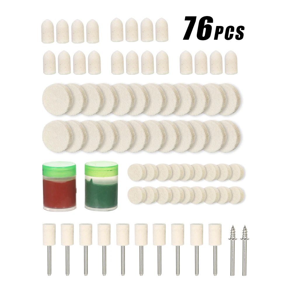 76 шт. роторный инструмент для полировки, набор аксессуаров. С 1/8 "хвостовиком, шерстяным войлоком, полировочным воском и войлочным полировочным наконечником, специально предназначенным для полировки.
