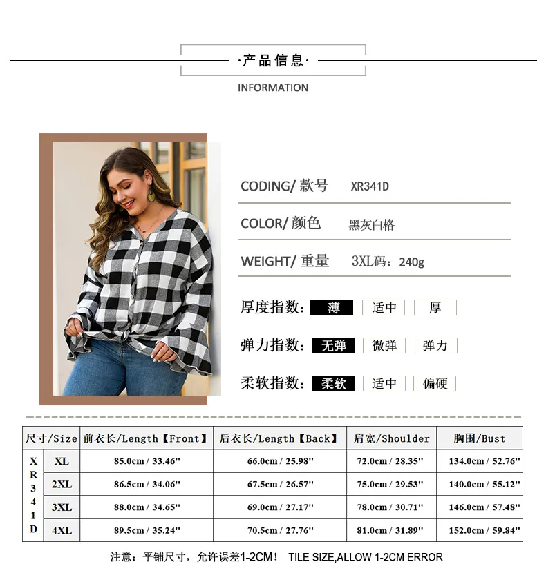 Отзывы о WHZHM Осенняя Клетчатая блуза женская с длинным Расклешенным рукавом на пуговицах