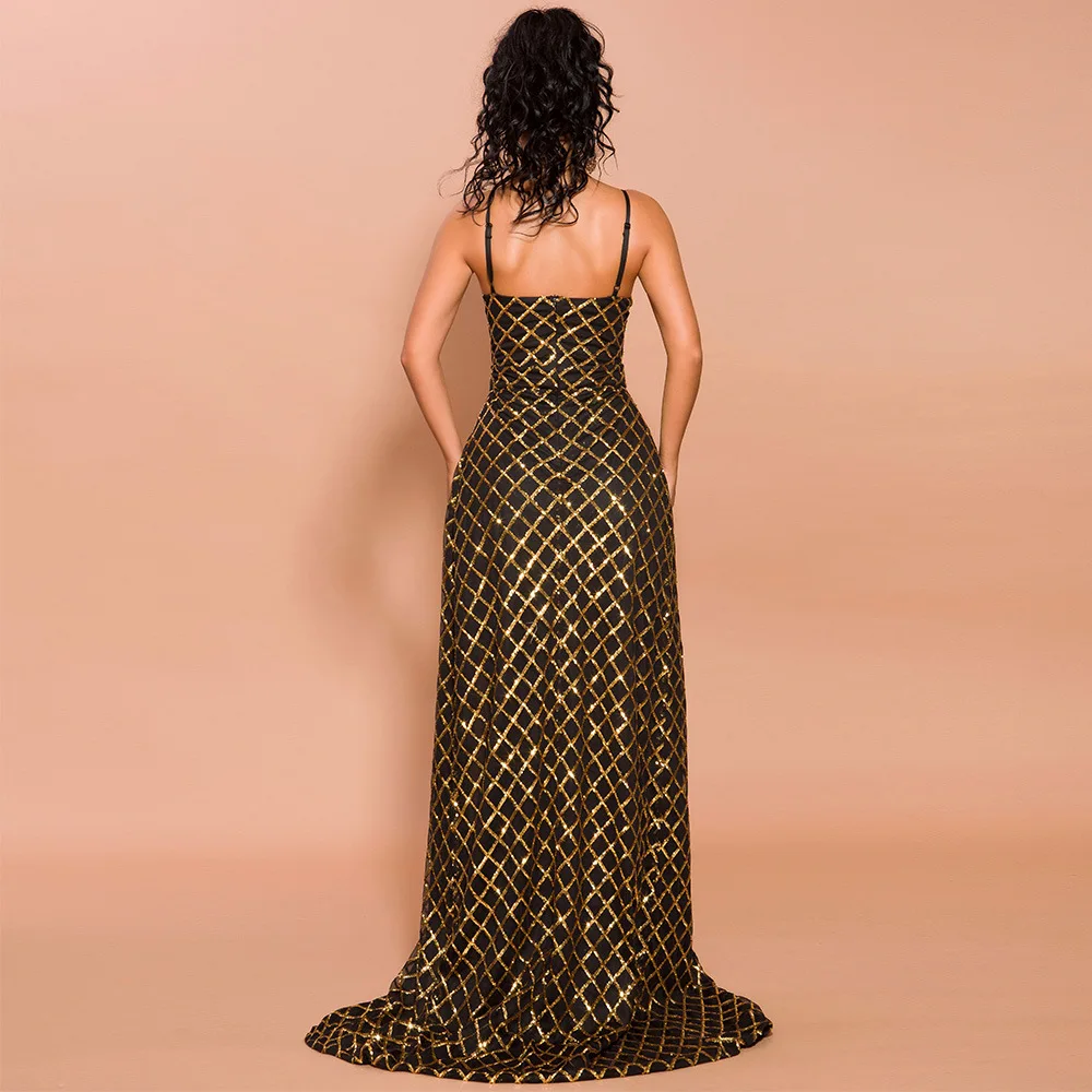 Купить Вечернее платье со шлейфом JaneVini с блестками из Дубая черного и золотого цвета