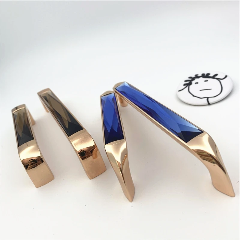 Ручки для шкафов LCH хрустальные синий янтарь розовое золото - купить