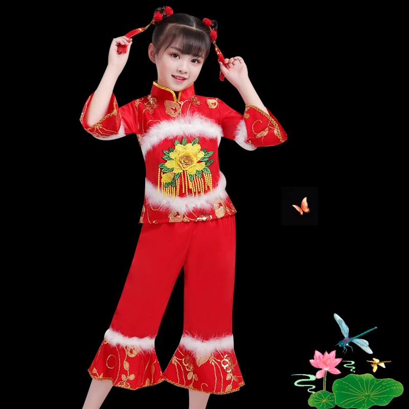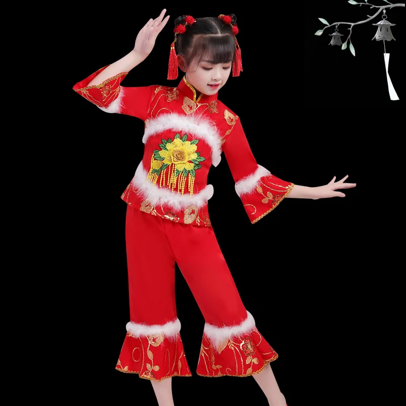 Детские костюмы для танцев yangko, новый стиль, для девочек, национальный танец рук, одежда для выступлений на новый год, Детская Одежда для танцев