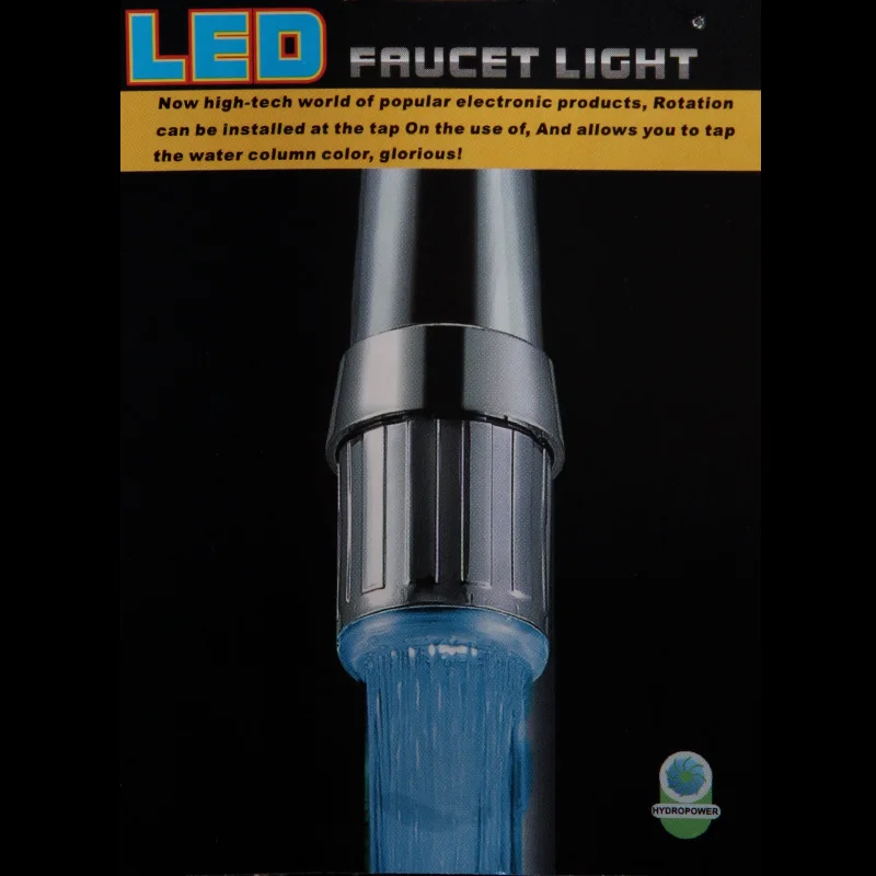 Удерживает кран, когда вы включаете набор светодиодов, чтобы превратить поток воды в красивый светильник водопада Встроенный датчик температуры сообщает вам, холодная или горячая вода и изменяет светильник соответствующего цвета