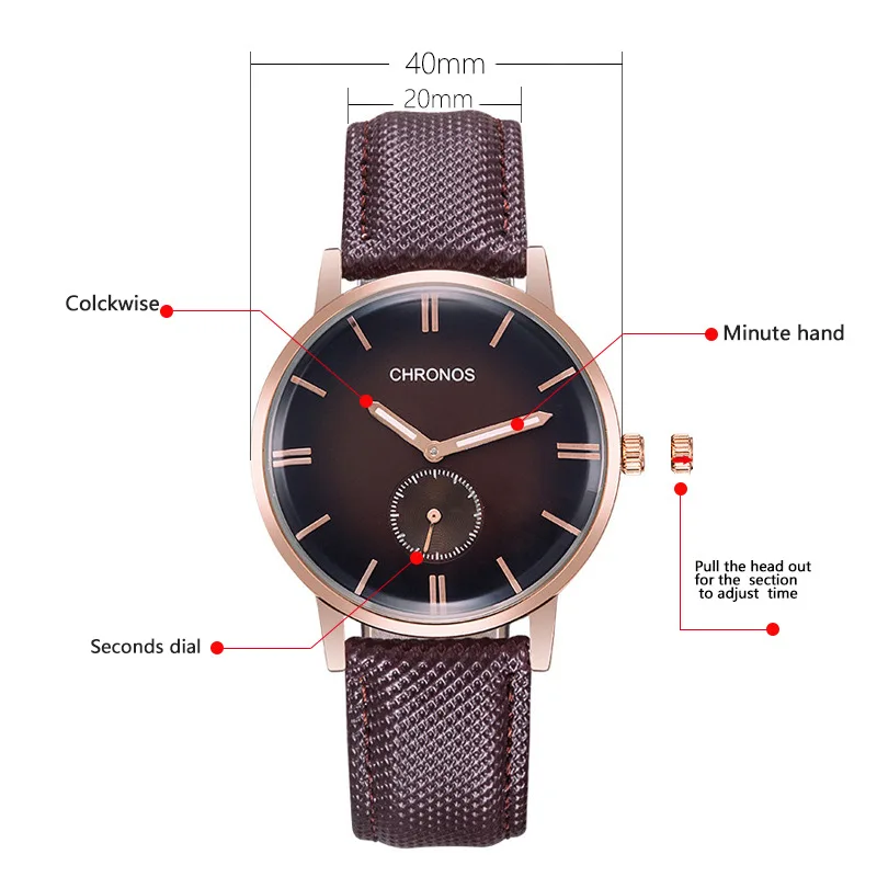 Циферблат 40 мм. Мода и элегантность. Простой дизайн из трех рук и двух дисков. Позволяет вам с легкостью наслаждаться вашим временем.