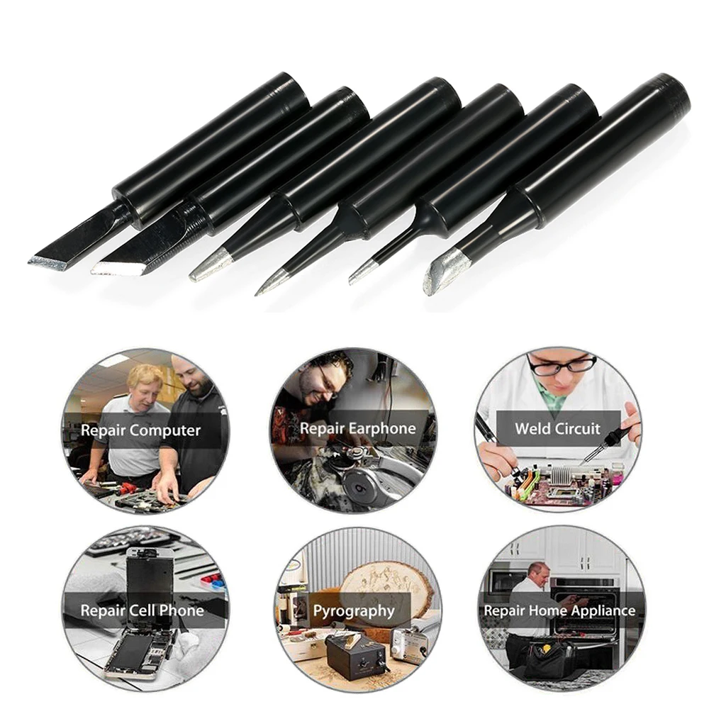Купить 6PCS Soldering Iron Tips Replacement 900M-T Solder Tip Welding Head Rework Station Repair Tool | Инструменты