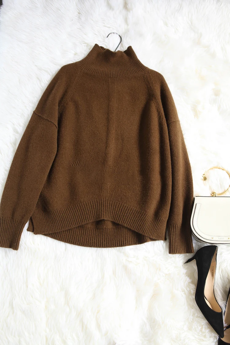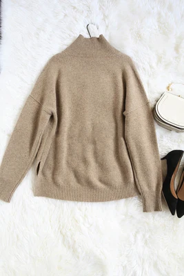 Новый двойной утолщенный свободный кашемировый свитер с высоким воротом женский - купить