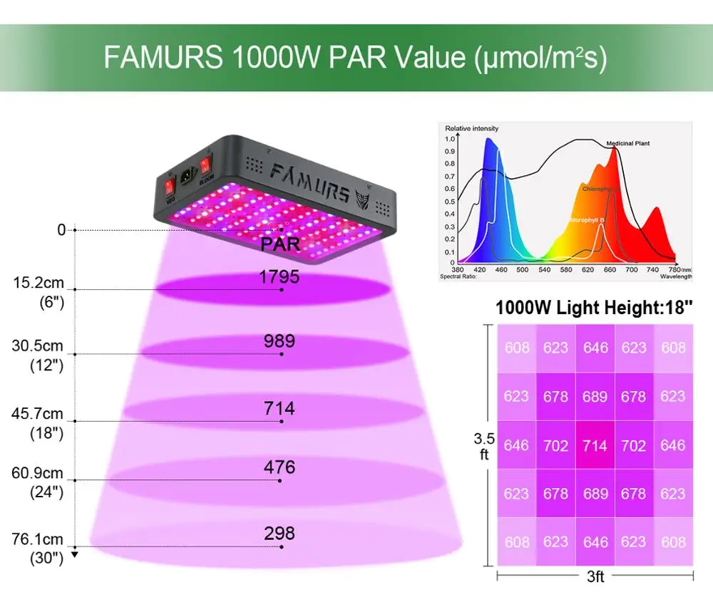 Отзывы о Famurs 1000 Вт Светодиодный светильник для выращивания полный спектр тройной чип палатки теплицы Комнатные