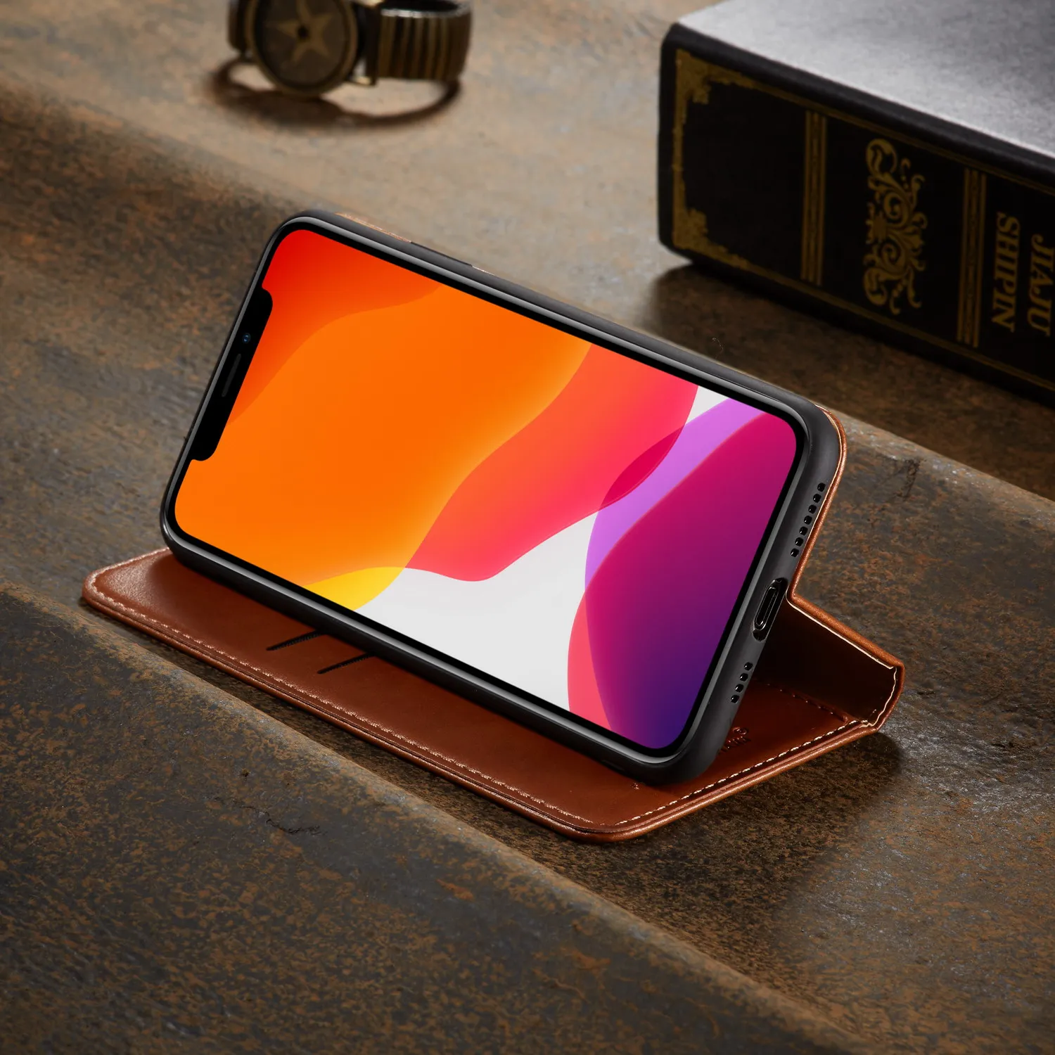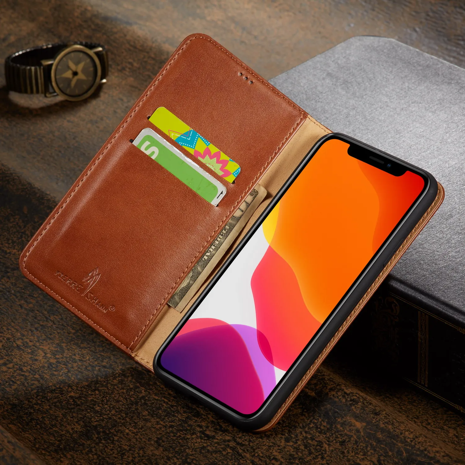 Отзывы о Чехол из натуральной кожи с карманом для карт и функцией стенда iPhone X XS Max XR 7 8 Plus 11 Pro