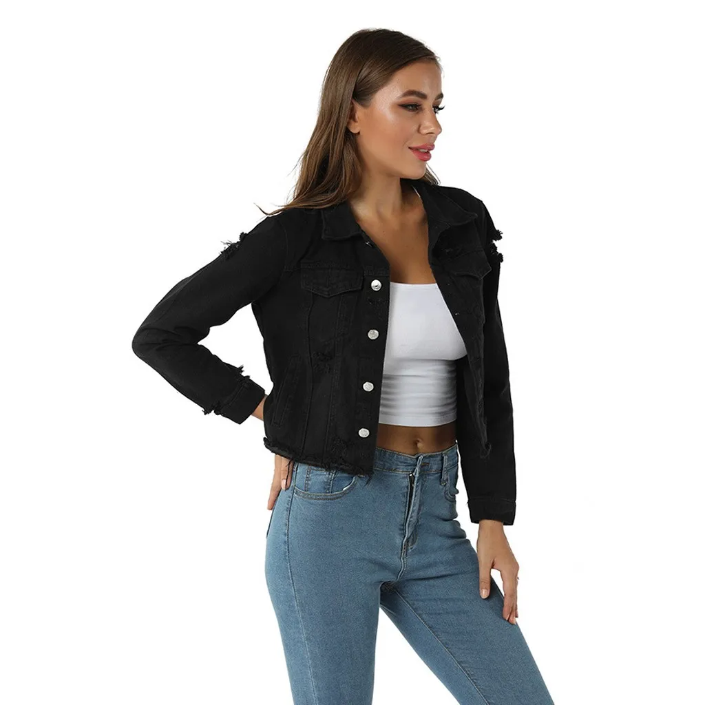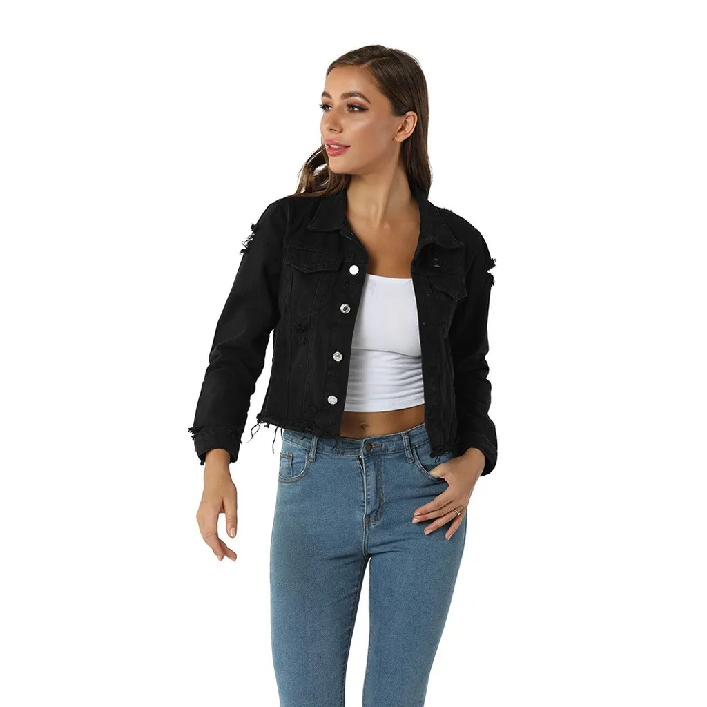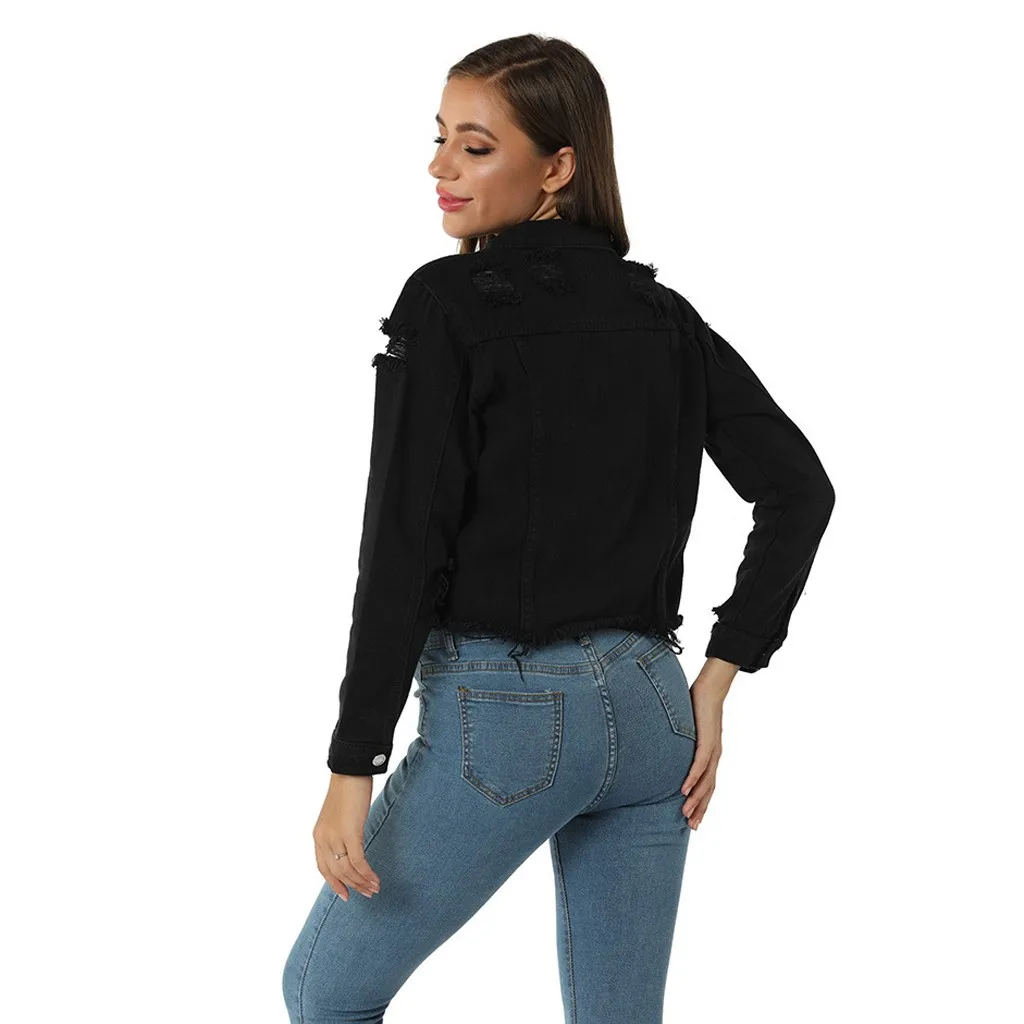 Купить 2019 сексуальные черные джинсовые куртки для женщин с дырками в стиле бойфренда