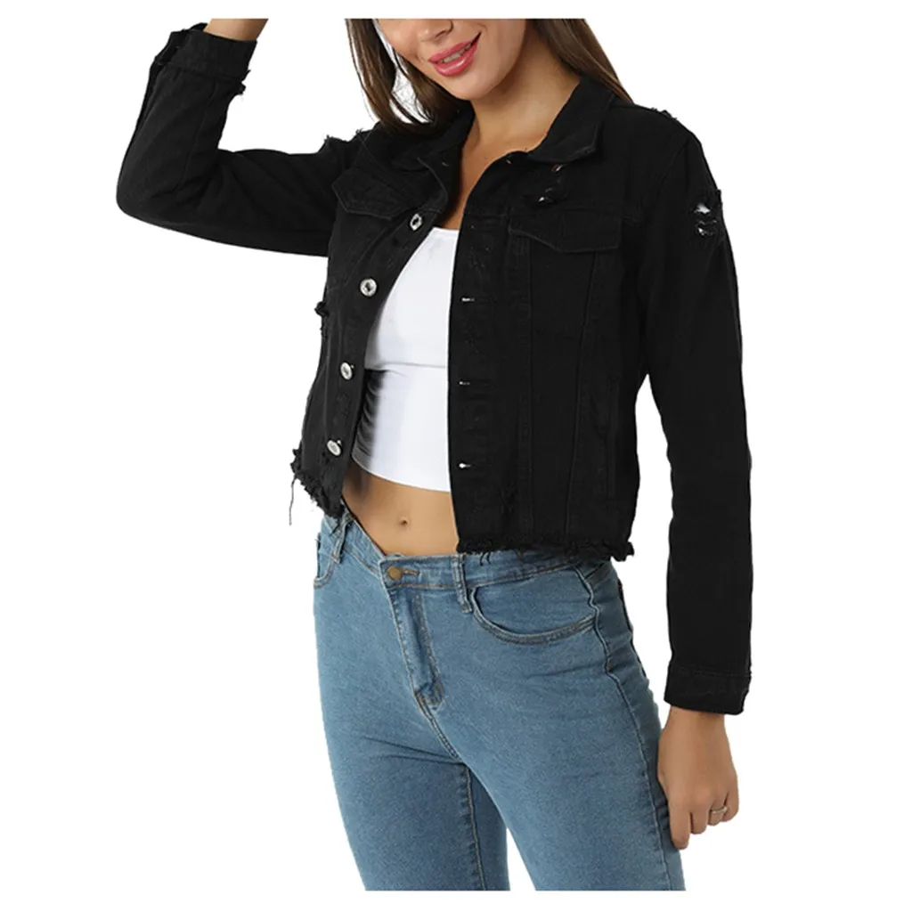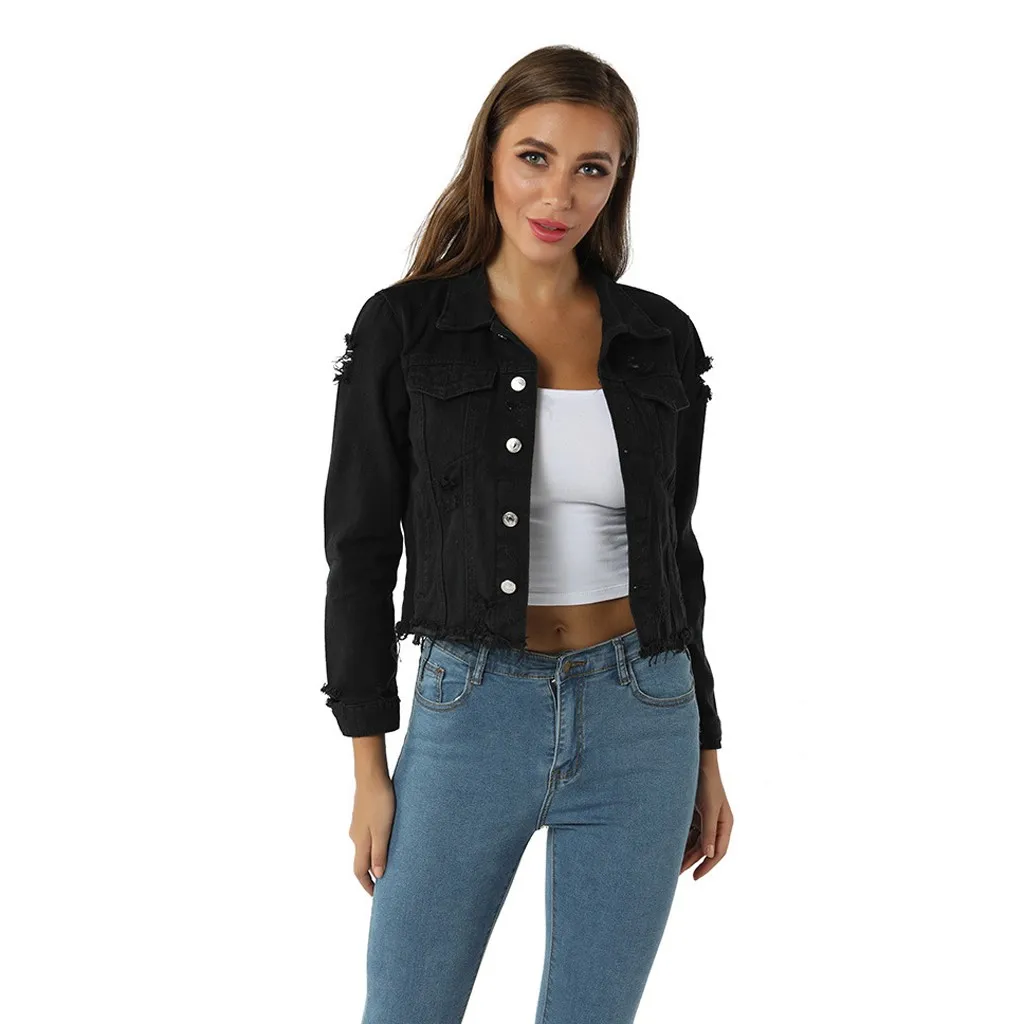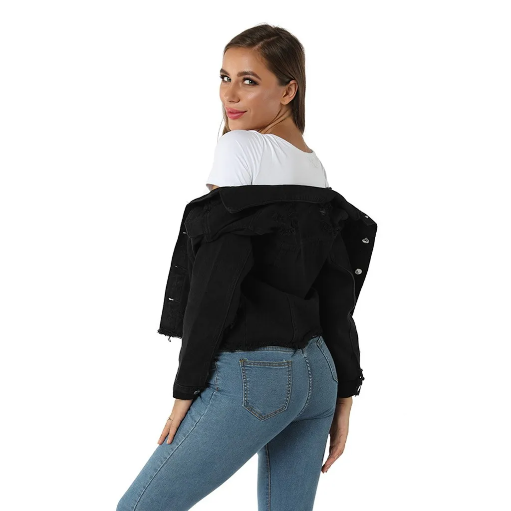 Купить 2019 сексуальные черные джинсовые куртки для женщин с дырками в стиле бойфренда