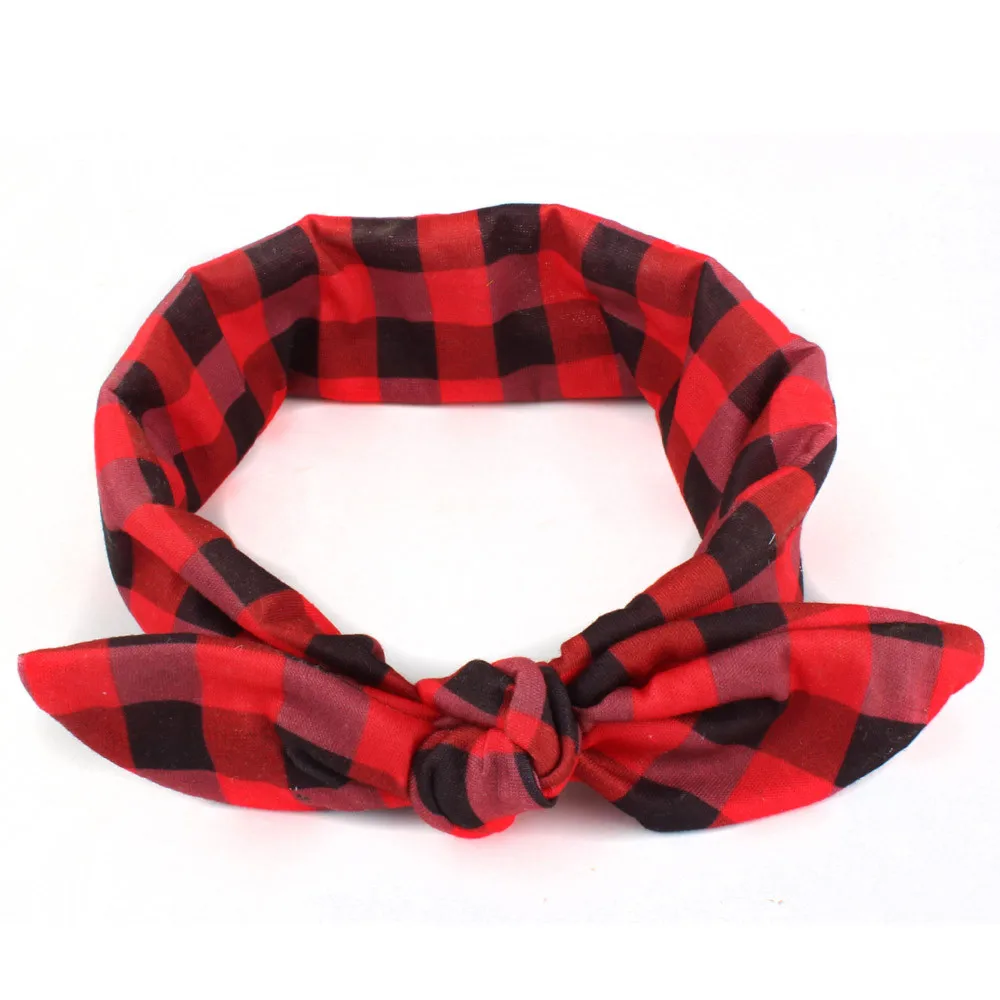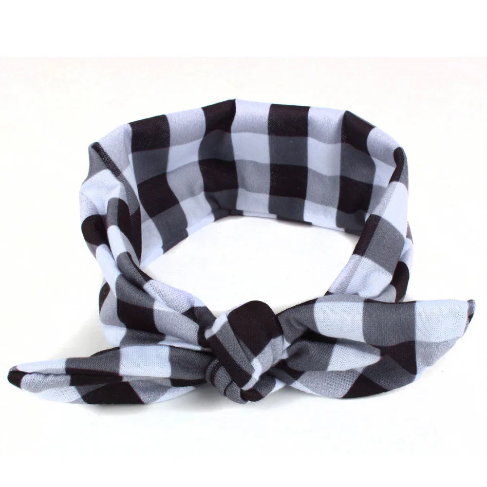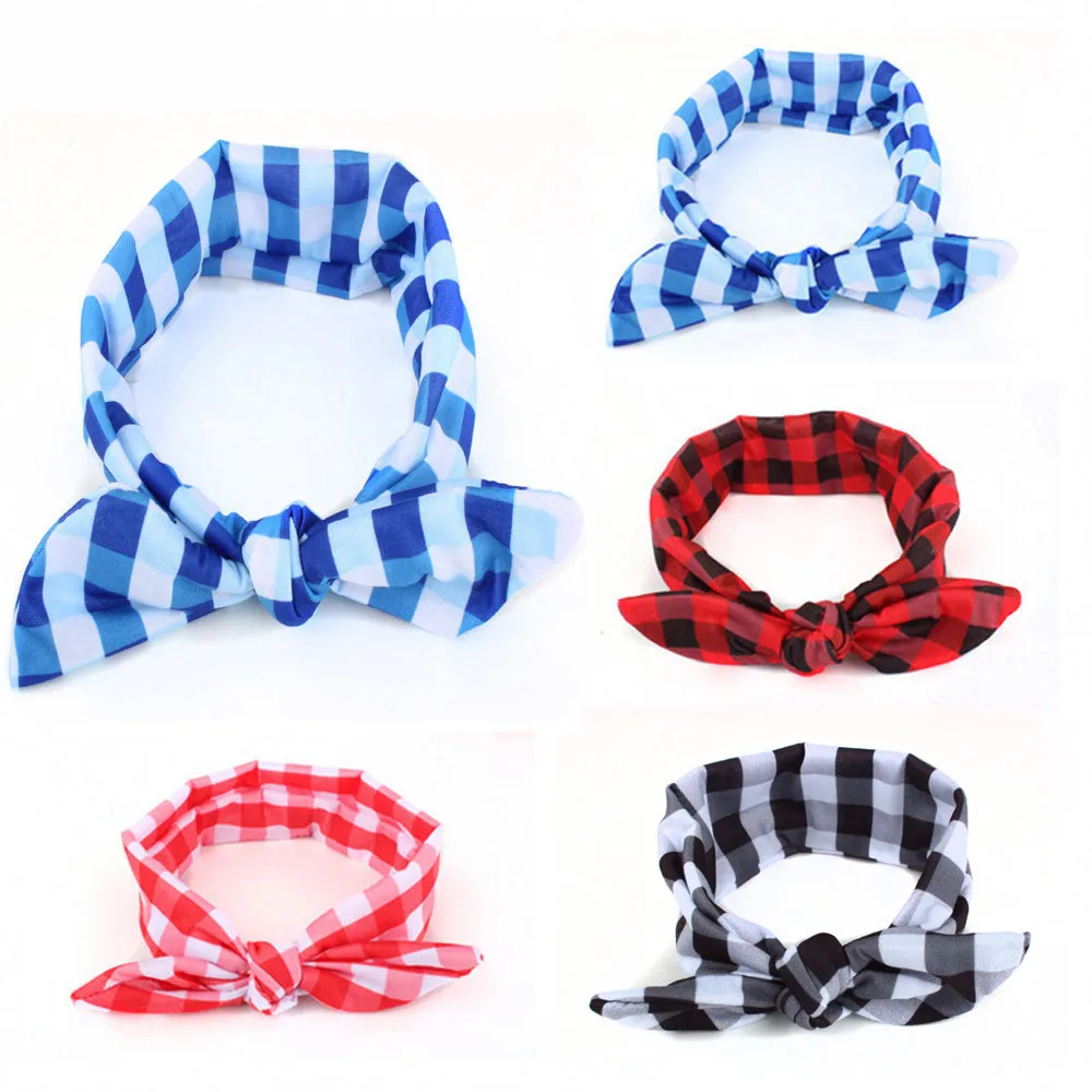 Мода Одежда в клетку для маленьких девочек; Длинная одеждаБантик на кроличьем меху Ушами, одежда из эластичной ткани повязка на голову
