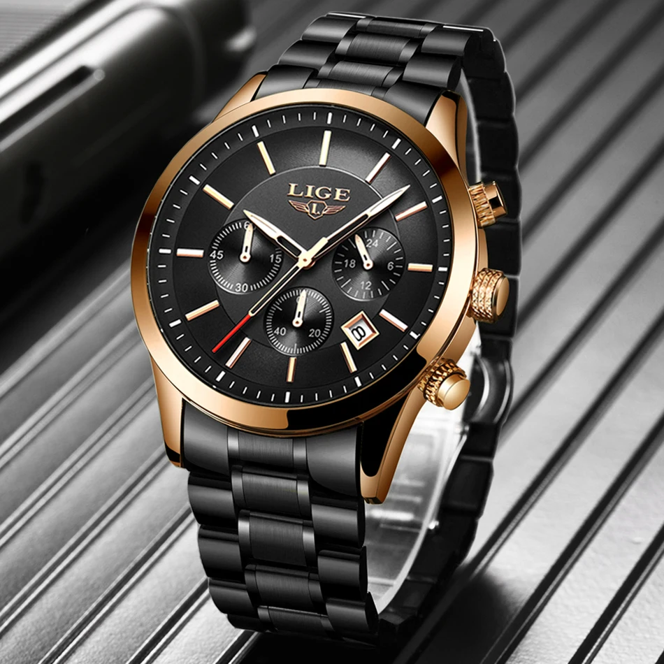 Купить Часы LIGE мужские деловые со светящимися датами водонепроницаемые полностью