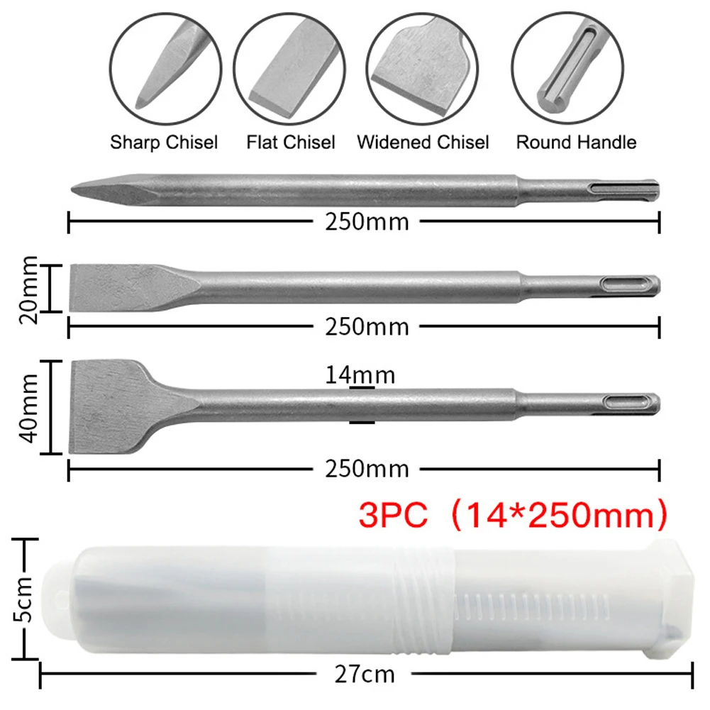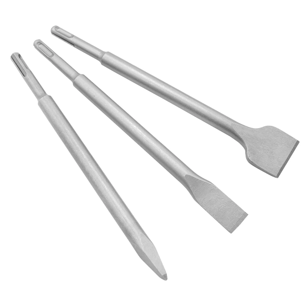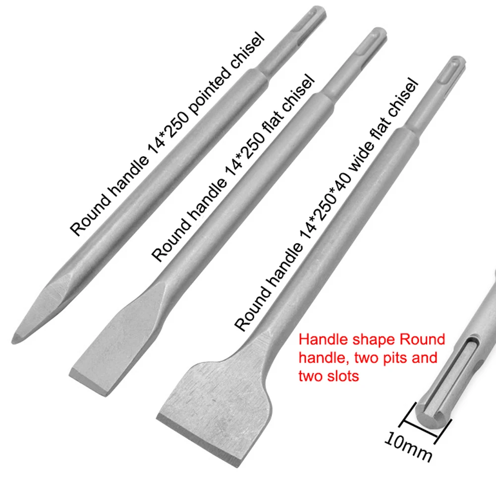 Купить 3PC Electric Hammer Chisel Round Handle Pointed Flat Pits Slots Set Impact Drill Concrete Wall Excavation |
