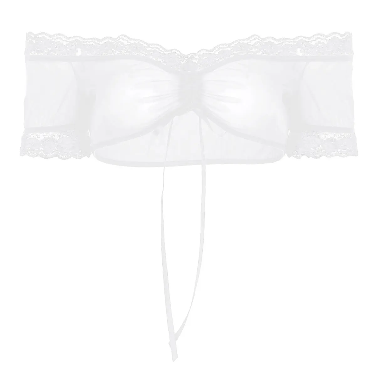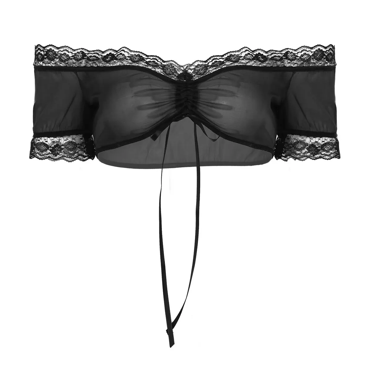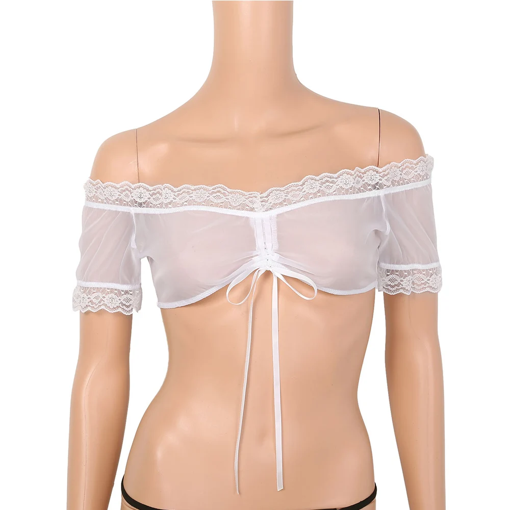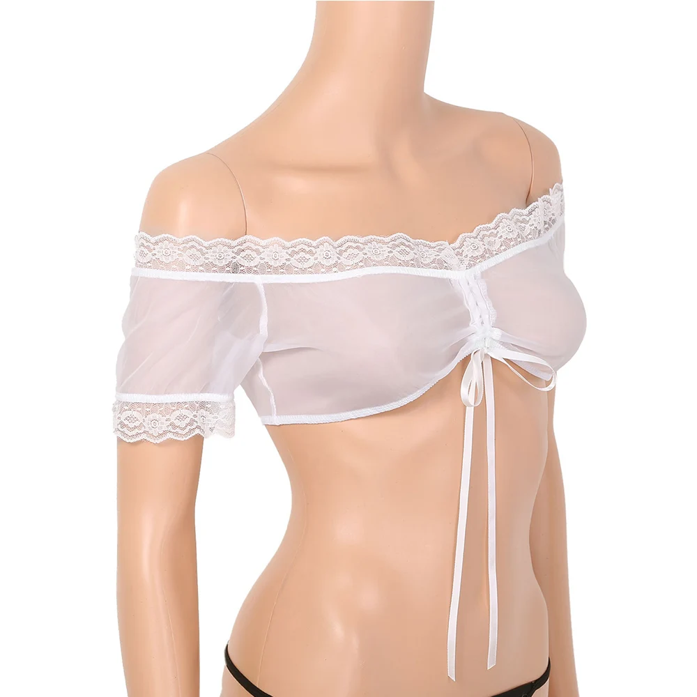 Кроп-топ женский прозрачный на шнуровке с открытыми плечами и короткими рукавами - купить