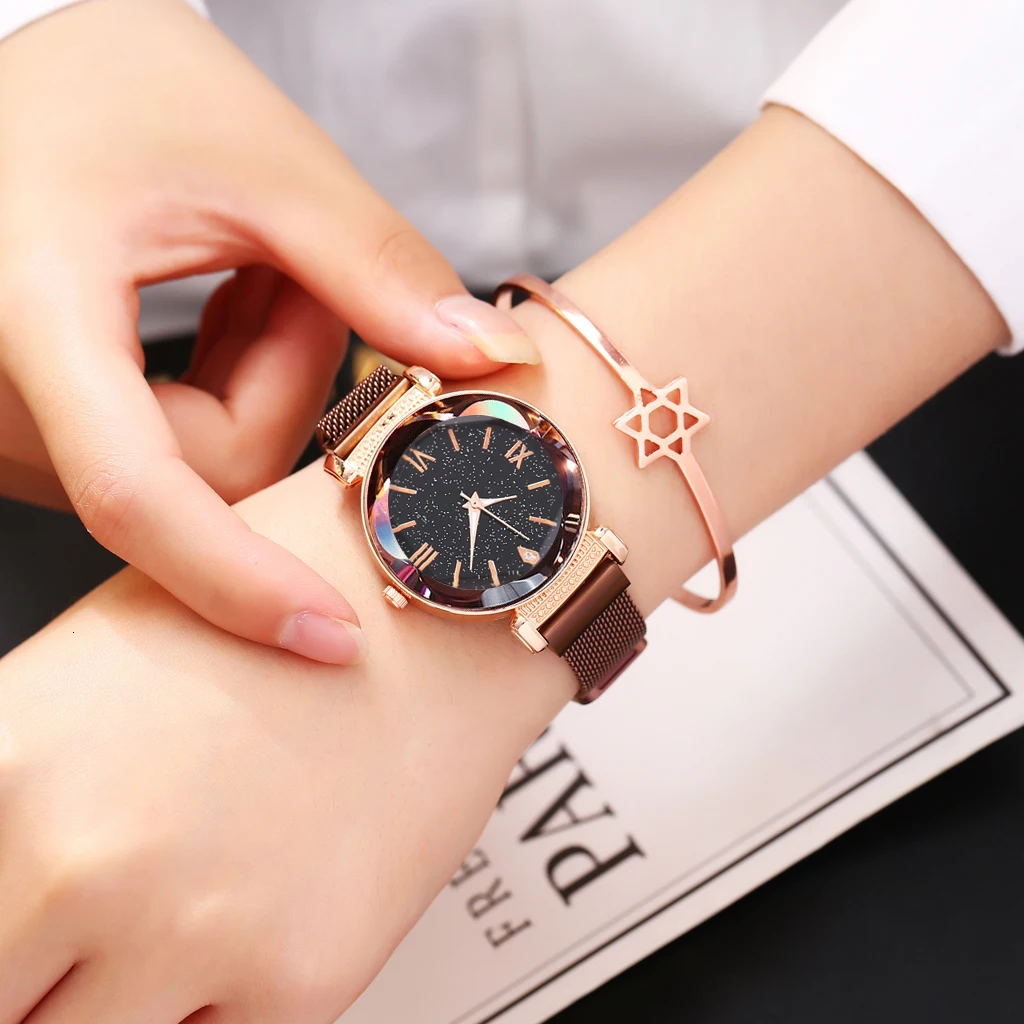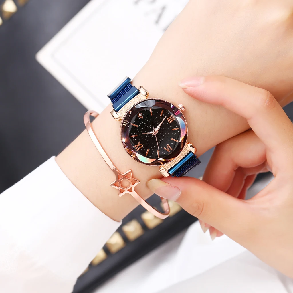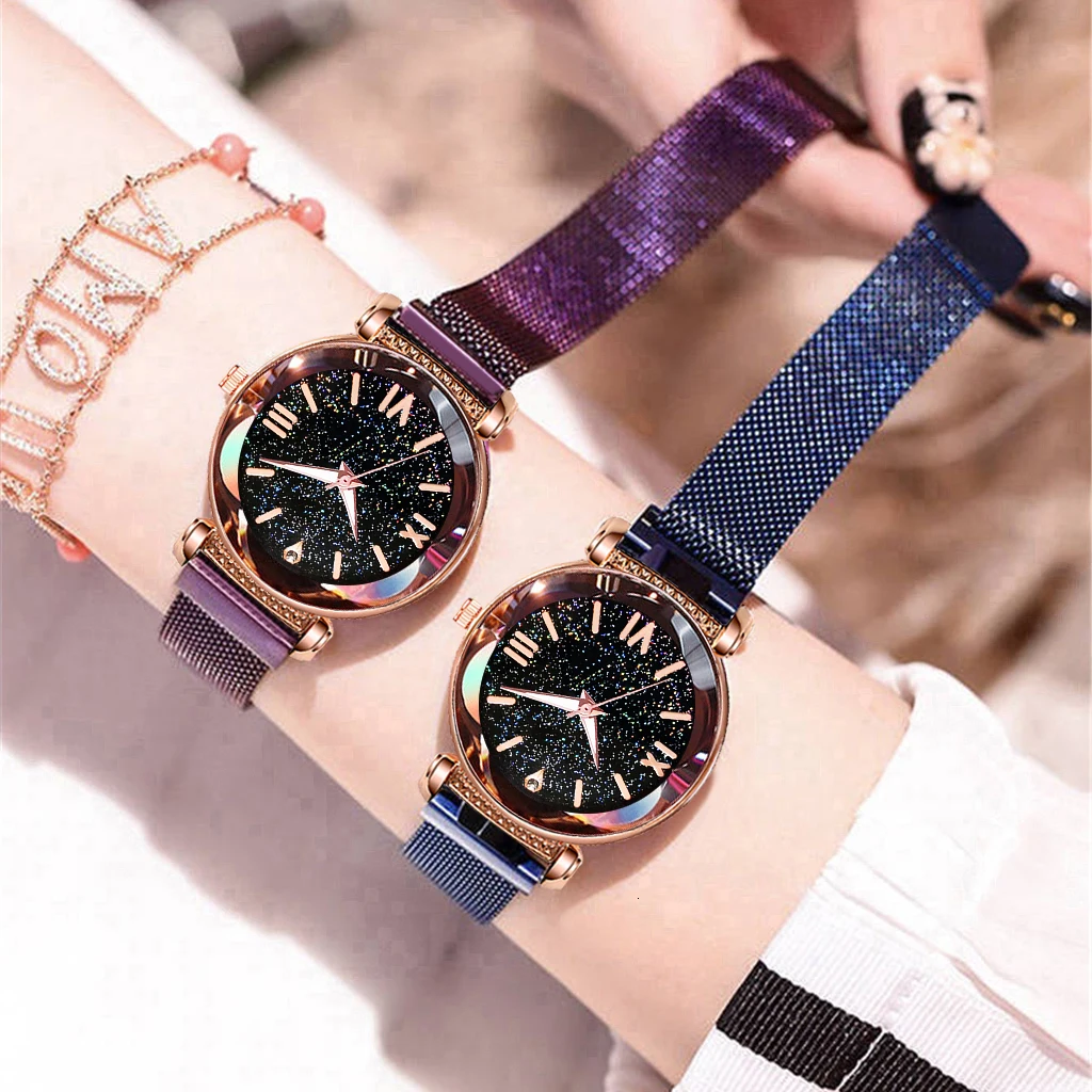 Купить Часы женские кварцевые из нержавеющей стали с магнитной застежкой звездное небо