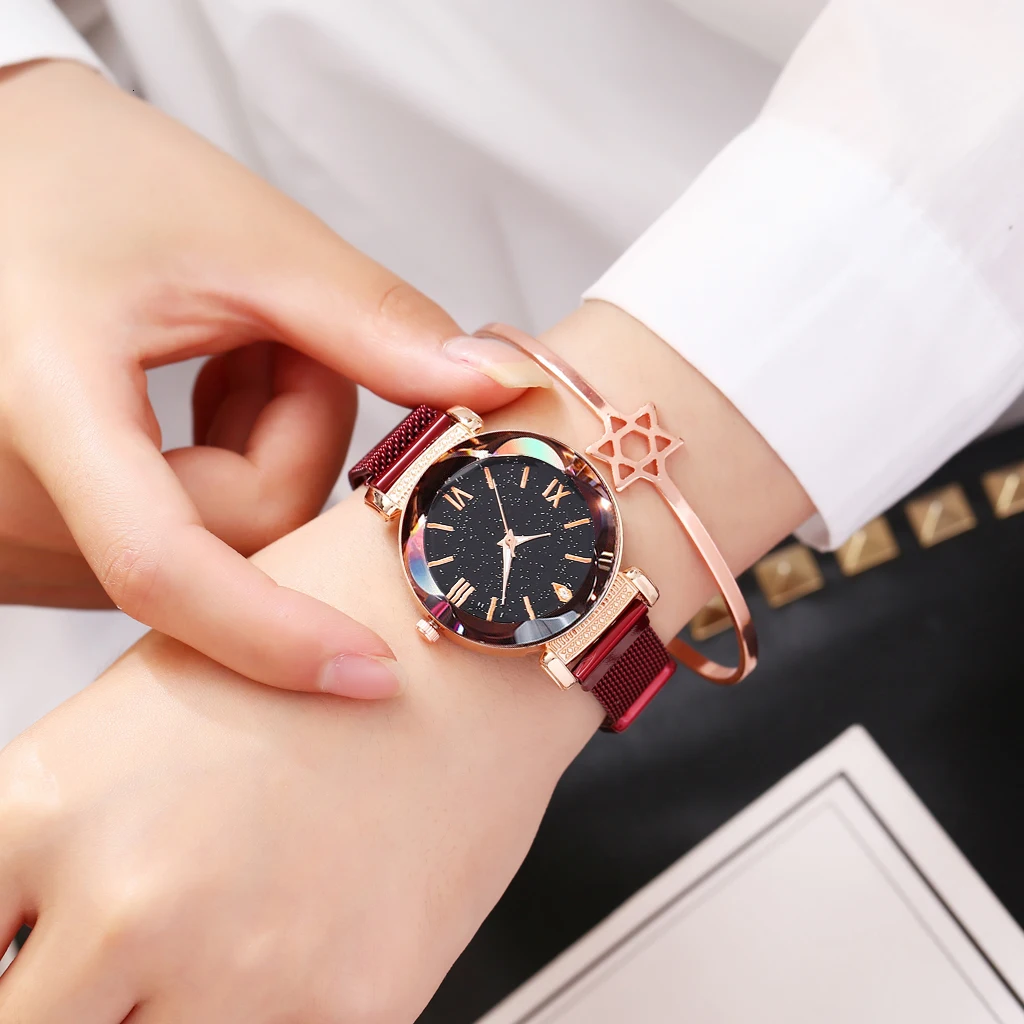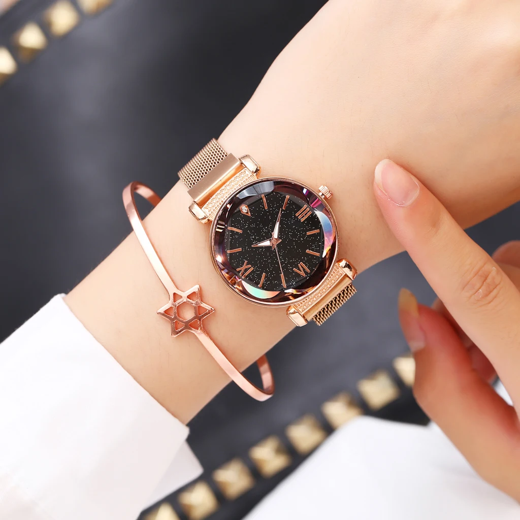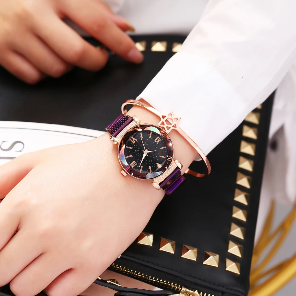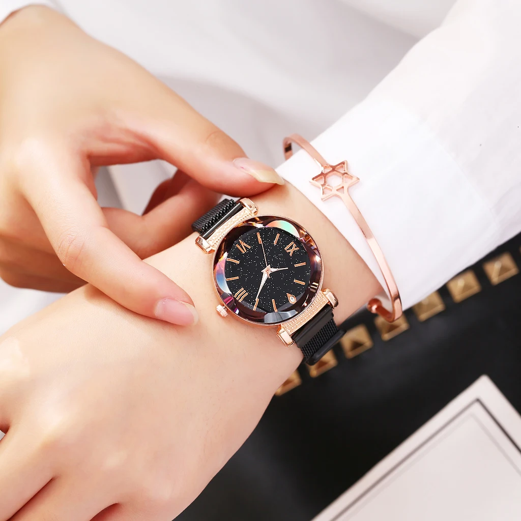 Купить Часы женские кварцевые из нержавеющей стали с магнитной застежкой звездное небо
