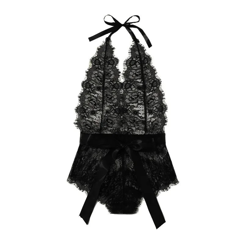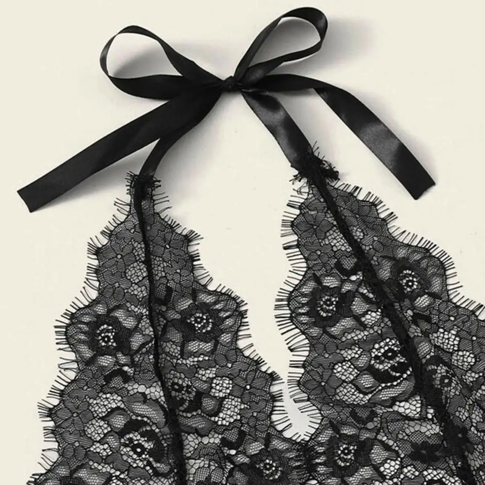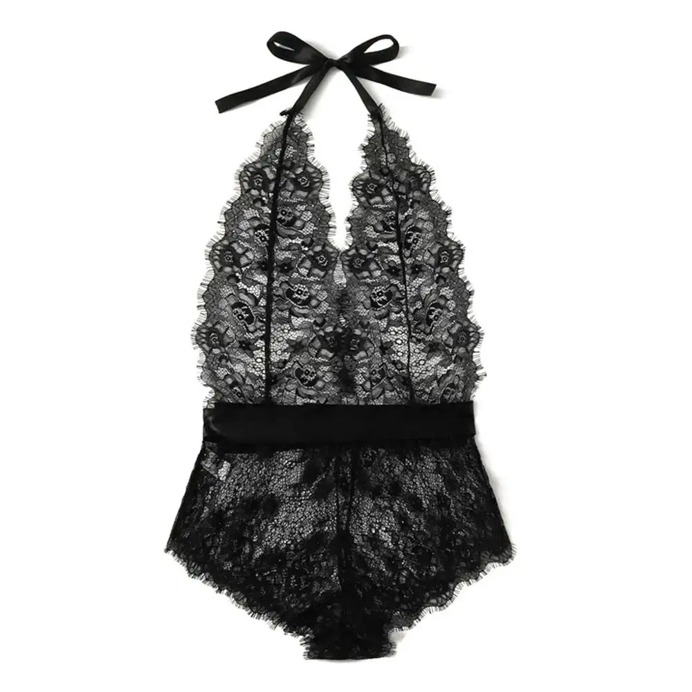 Для женщин нижнее белье, сексуальные Лифчики для ресниц кружево с цветочным мотивом с завязкой спереди Тедди, боди с открытой спиной, нижнее белье-комбинезон