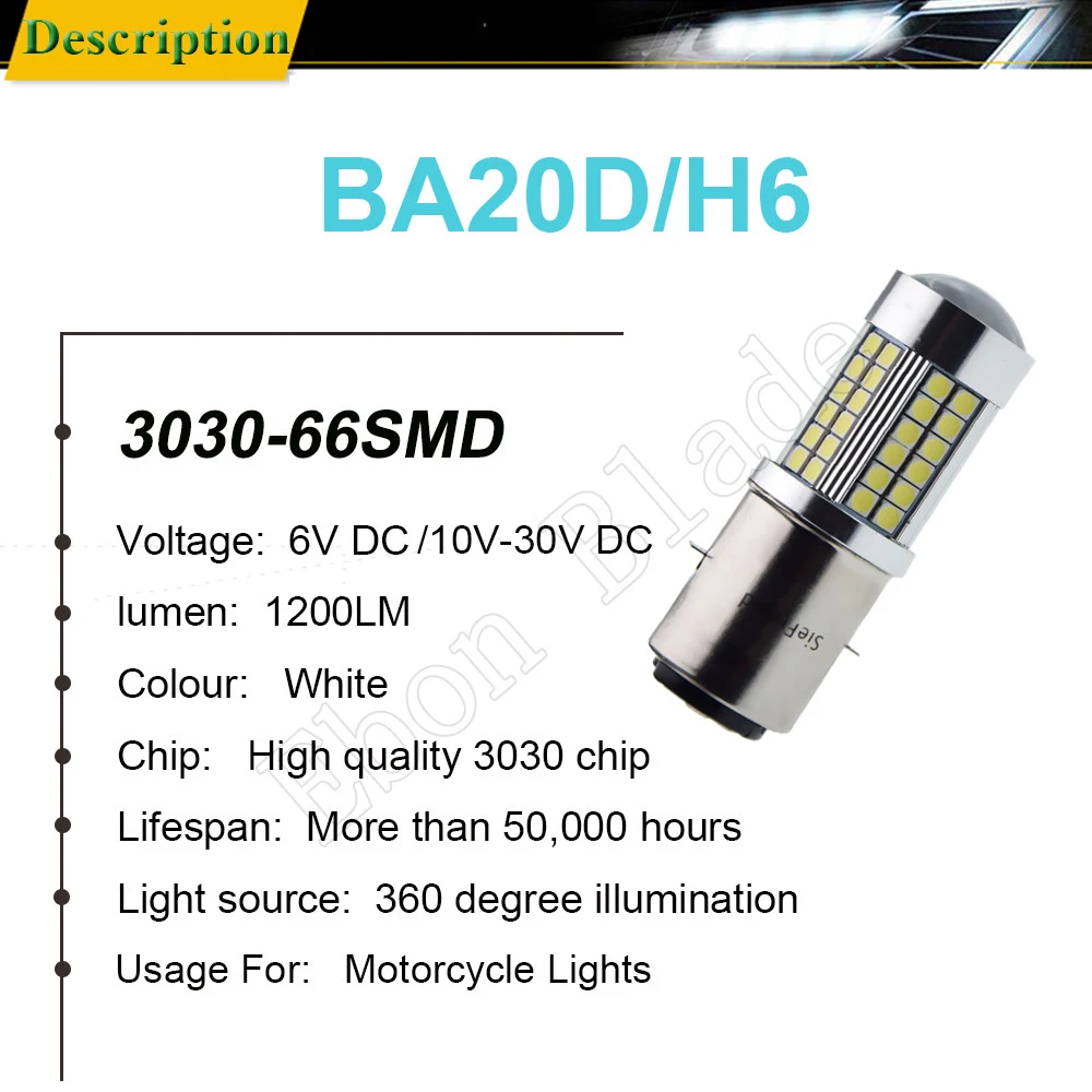 Отзывы о Фара для мотоцикла H6 белая 6 в 12 В BA20D H4 биксеноновый луч 3030 66SMD светодиодный