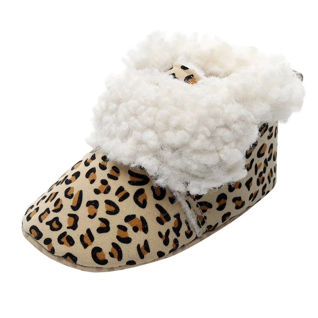 Зимние теплые ботиночки с леопардовым принтом для маленьких мальчиков и девочек